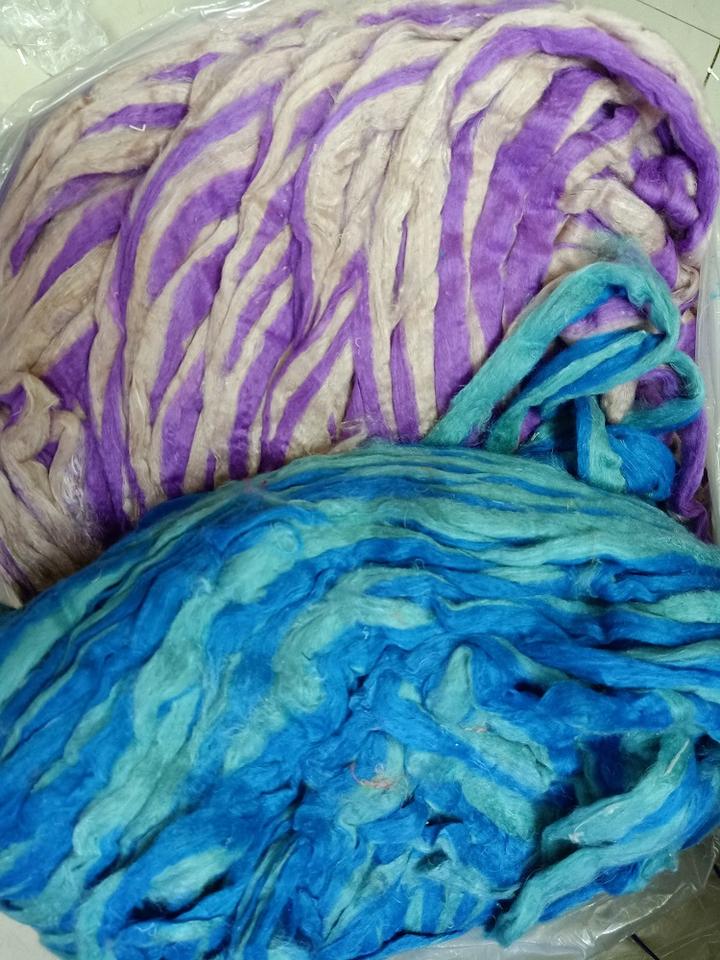เส้นใยไหมทัสซาห์สีพื้นทำมือเป็นมิตรกับสิ่งแวดล้อม บรรจุถุง 1 กิโลกรัม มีสีให้เลือกมากมายสำหรับร้านขายเส้นใย