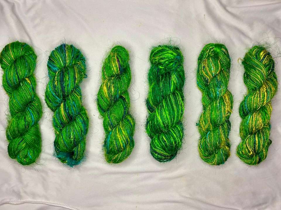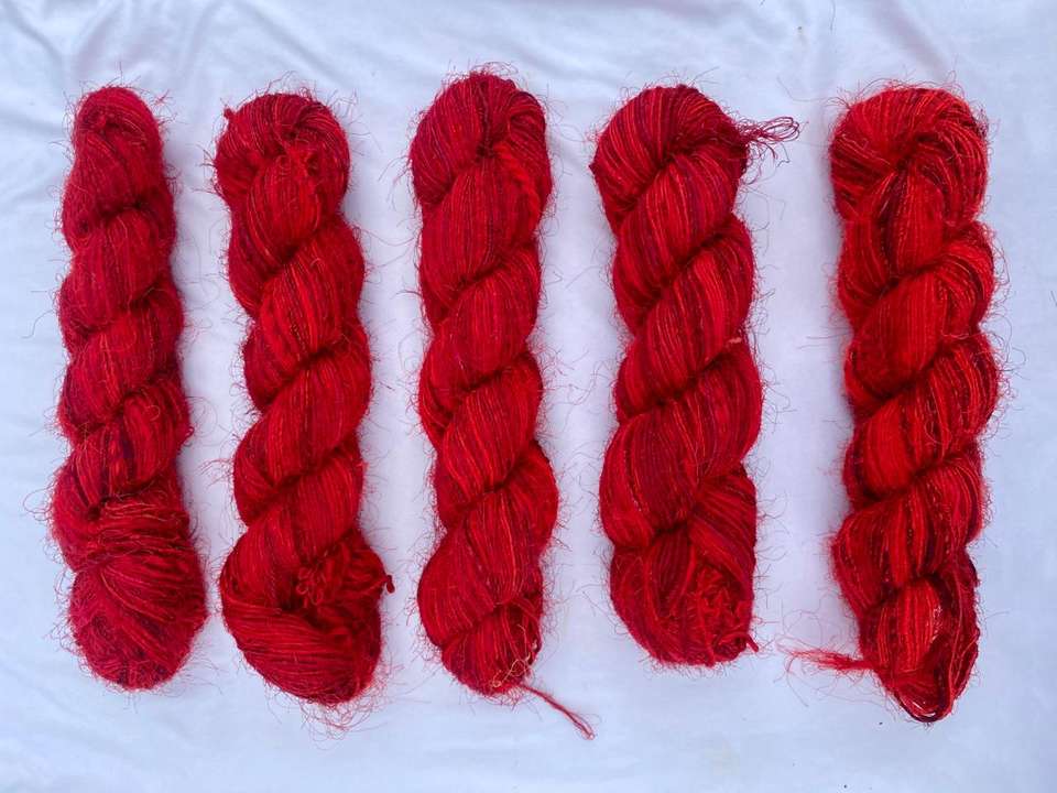 เส้นด้ายไหมซารีเชนิลล์ย้อมสีธรรมชาติ ป้องกันแบคทีเรีย เป็นมิตรกับสิ่งแวดล้อม หลากสีสัน ทอด้วยมือ เนื้อนุ่ม รีไซเคิล เหมาะสำหรับถักโครเชต์ ทอผ้า