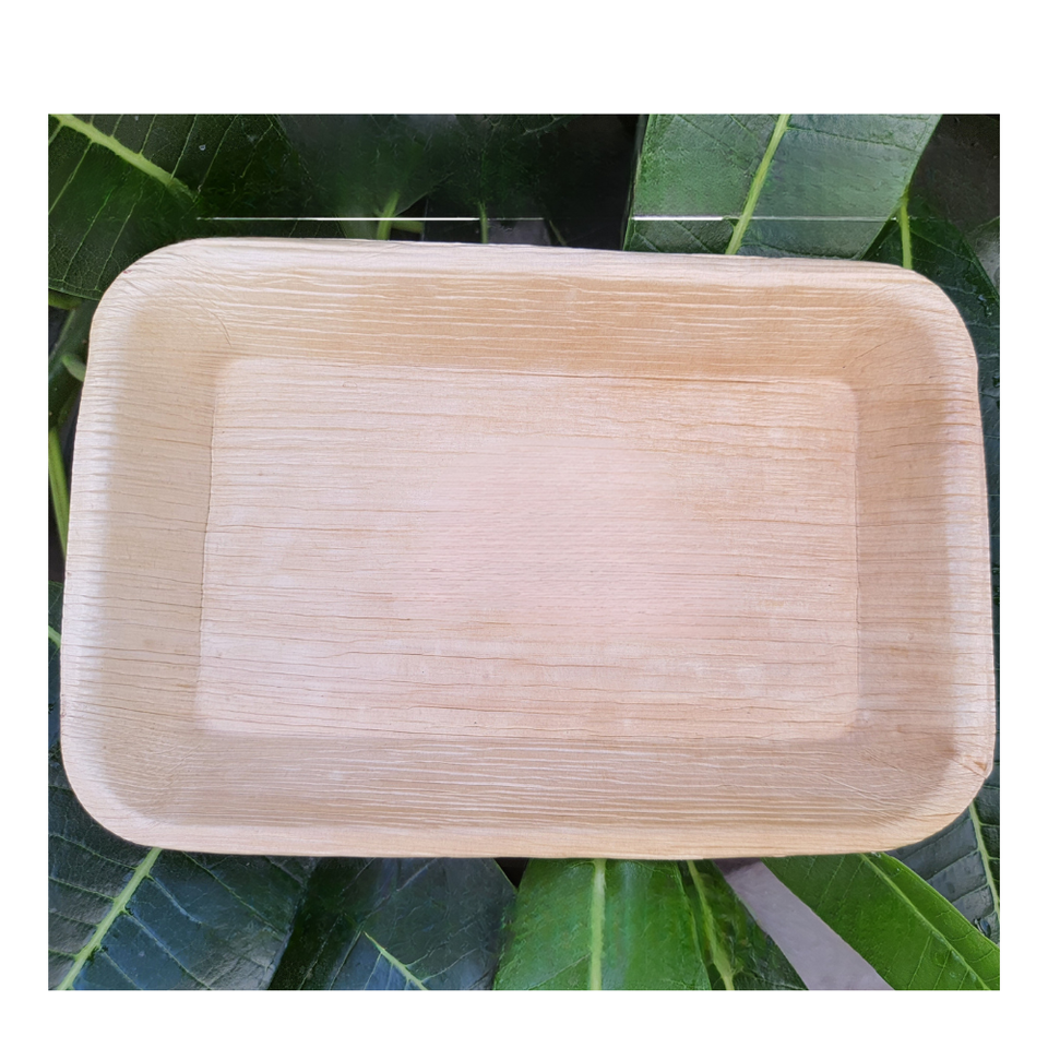 แผ่นใบปาล์มทรงสี่เหลี่ยมผืนผ้าแบบใช้แล้วทิ้งอุปกรณ์รับประทานอาหารที่เป็นมิตรต่อสิ่งแวดล้อมทนทานต่อการใช้งาน