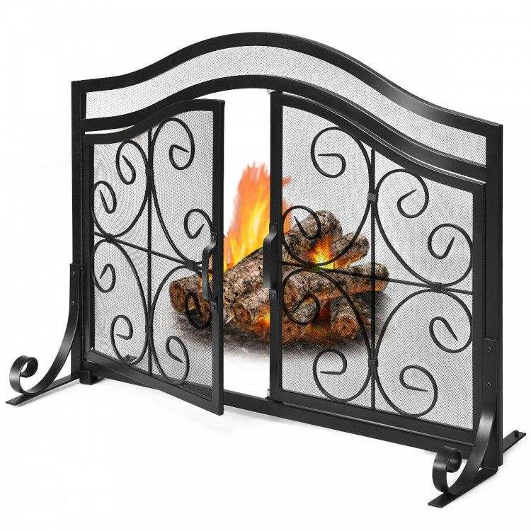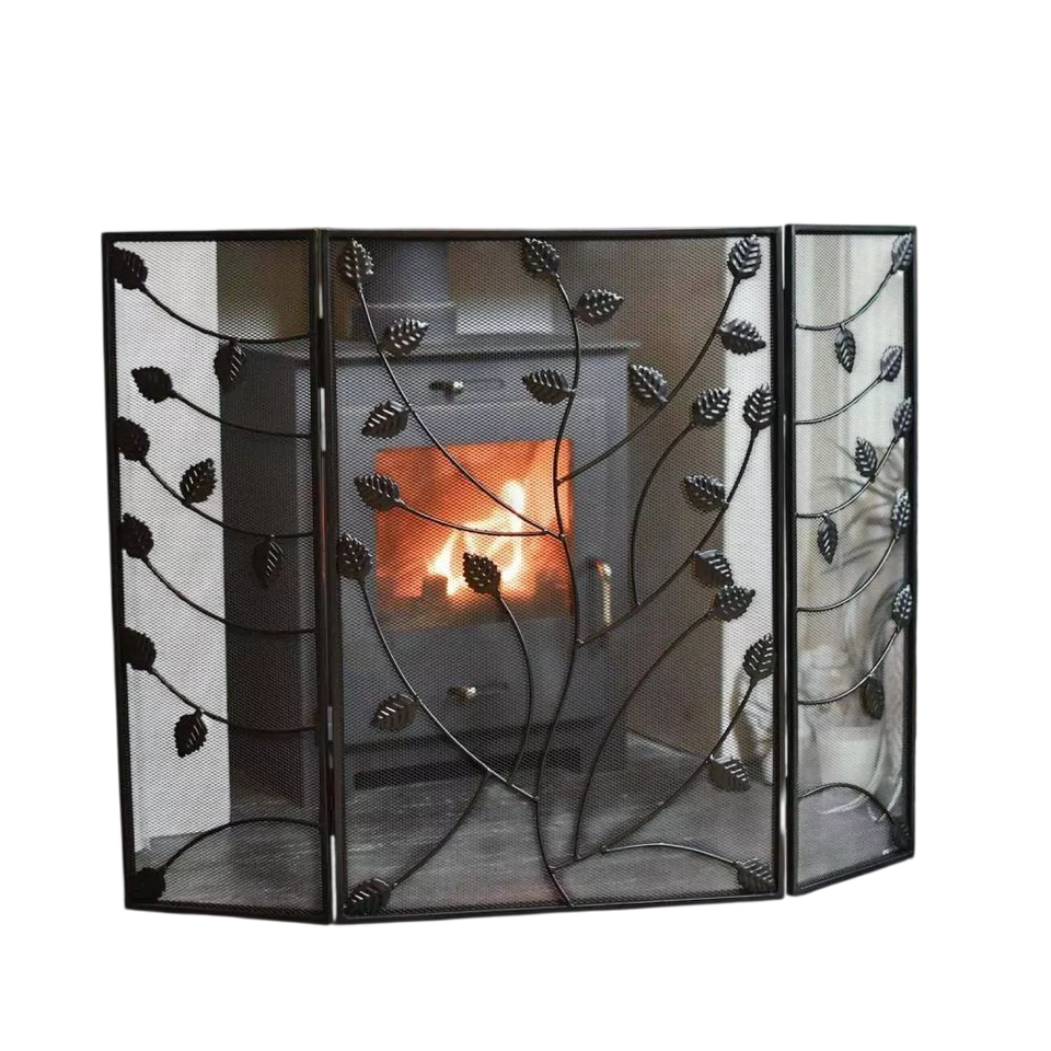 ฉากกั้นไฟแบบแผงเดี่ยว ทำจากลวดเหล็กเคลือบสีดำ เป็นมิตรกับสิ่งแวดล้อม อุปกรณ์ตกแต่งเตาผิง