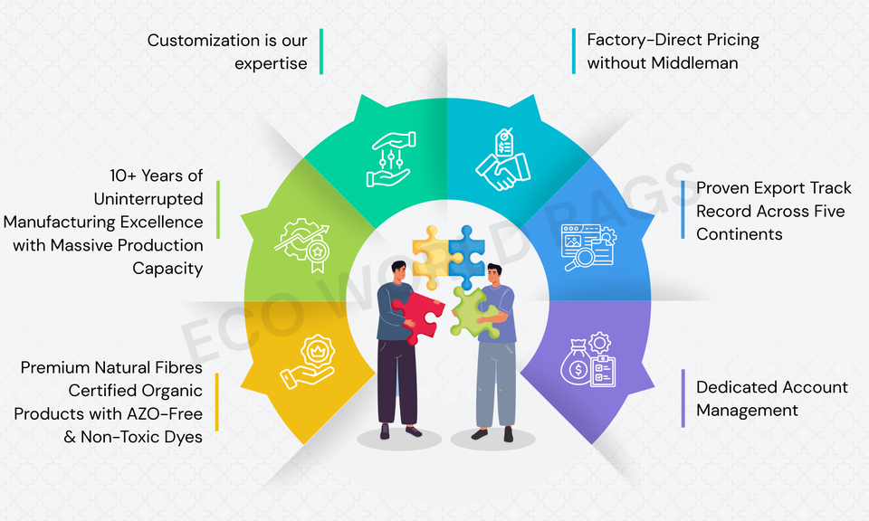 ถุงช้อปปิ้งจากปอกระเจาเป็นมิตรกับสิ่งแวดล้อม - โลโก้และขนาดที่กำหนดเองได้ คุณภาพพรีเมียม ขายส่ง ถุงอเนกประสงค์นำกลับมาใช้ใหม่ได้ ผลิตในอินเดีย