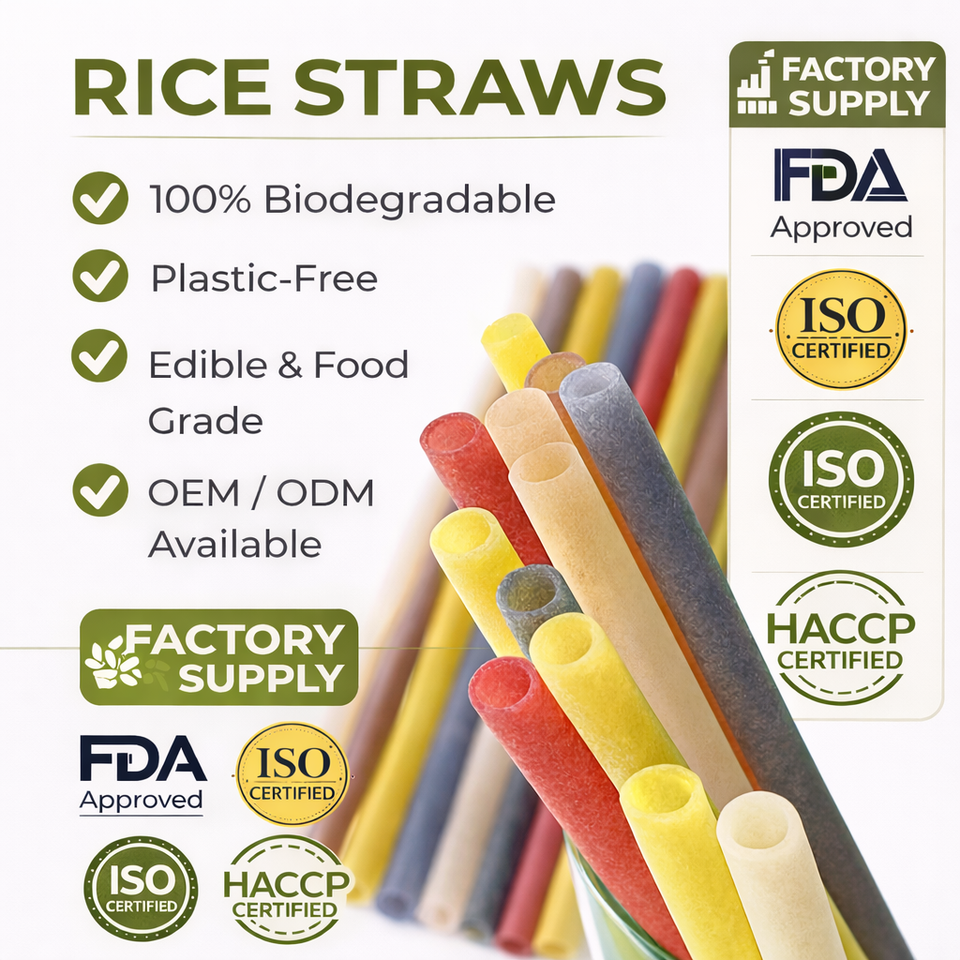 หลอดดื่มข้าวแบบใช้แล้วทิ้งหลอดสำหรับใช้ในห้องครัวเป็นมิตรกับสิ่งแวดล้อม