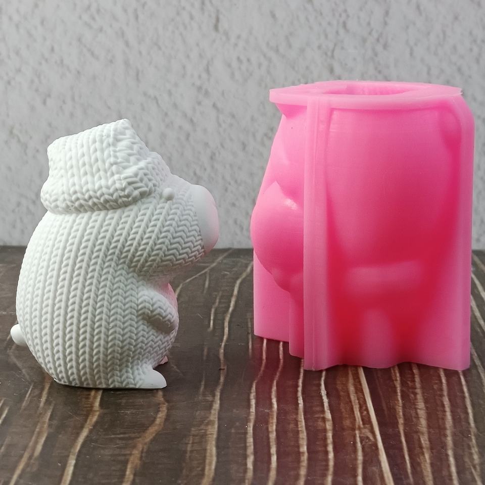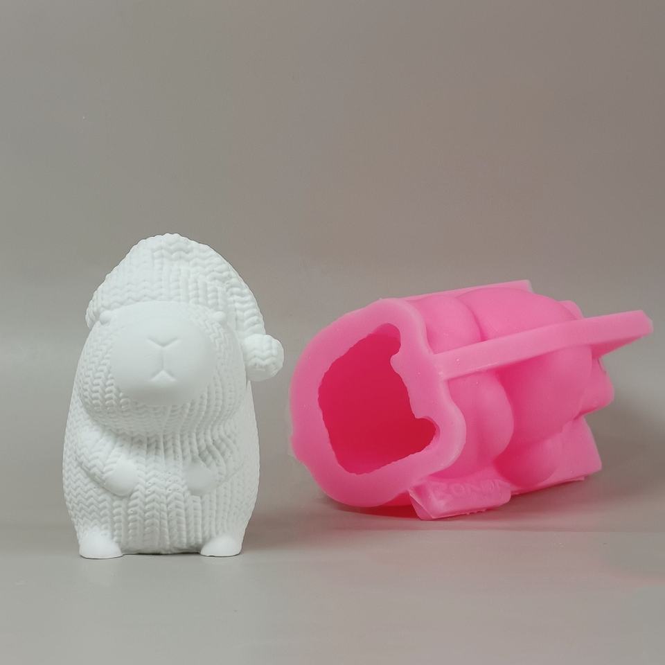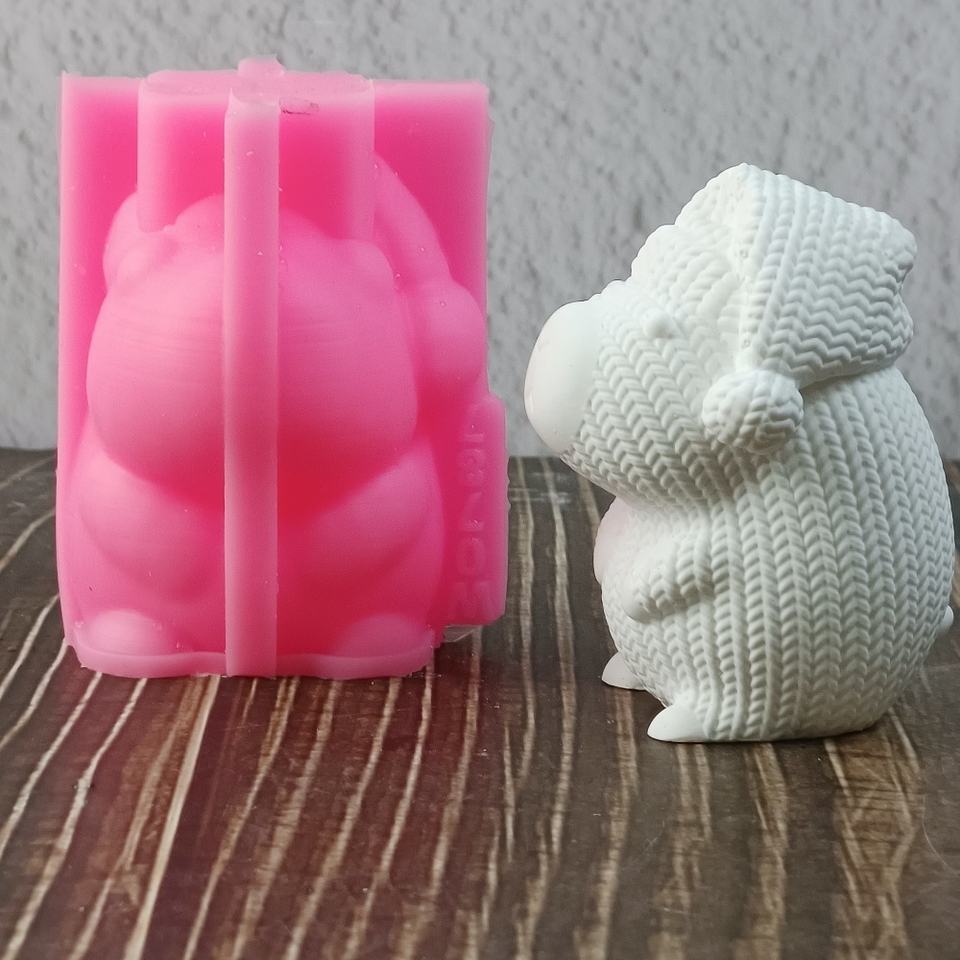 แม่พิมพ์เค้กซิลิโคนถักนิตติ้งเป็นมิตรกับสิ่งแวดล้อม W0787 3D หมีแรคคูนเครื่องมือรูปหัวใจสำหรับบาร์สี่เหลี่ยมขนาดเล็ก