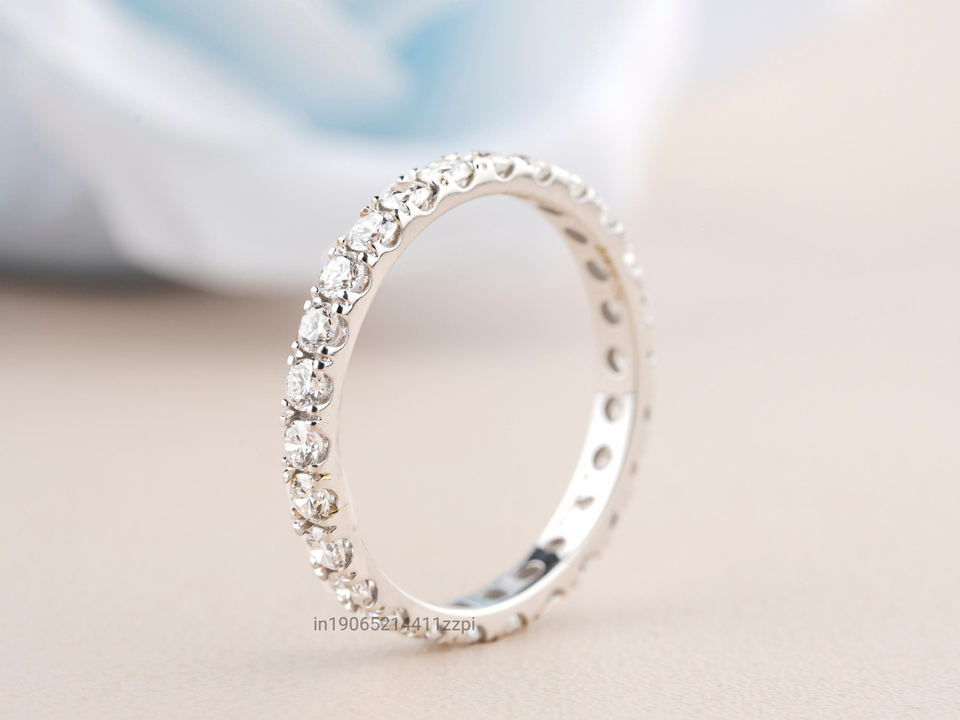 Eco Friendly Lab Diamond Full Eternity Pave Wedding Band in Solid Gold Stackable Ring for Women Anniversary or Bridal Gift Idea