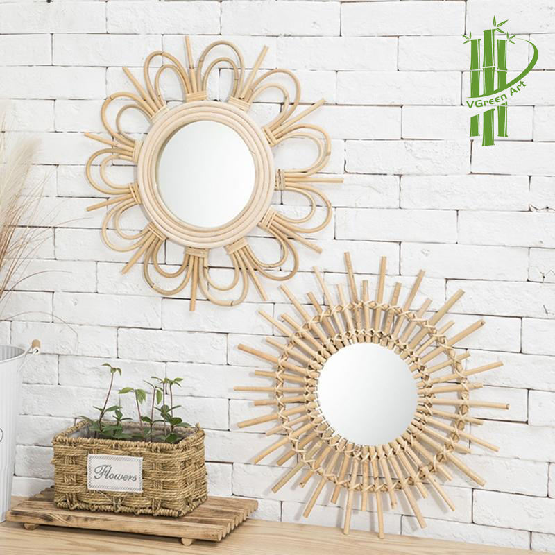 ถาดรองกระจกทรงกลมหวายไม้ไผ่ขนาดใหญ่เป็นมิตรกับสิ่งแวดล้อมดีไซน์เรียบง่ายกะทัดรัดตกแต่งบ้านสำหรับใช้ในการแต่งหน้า