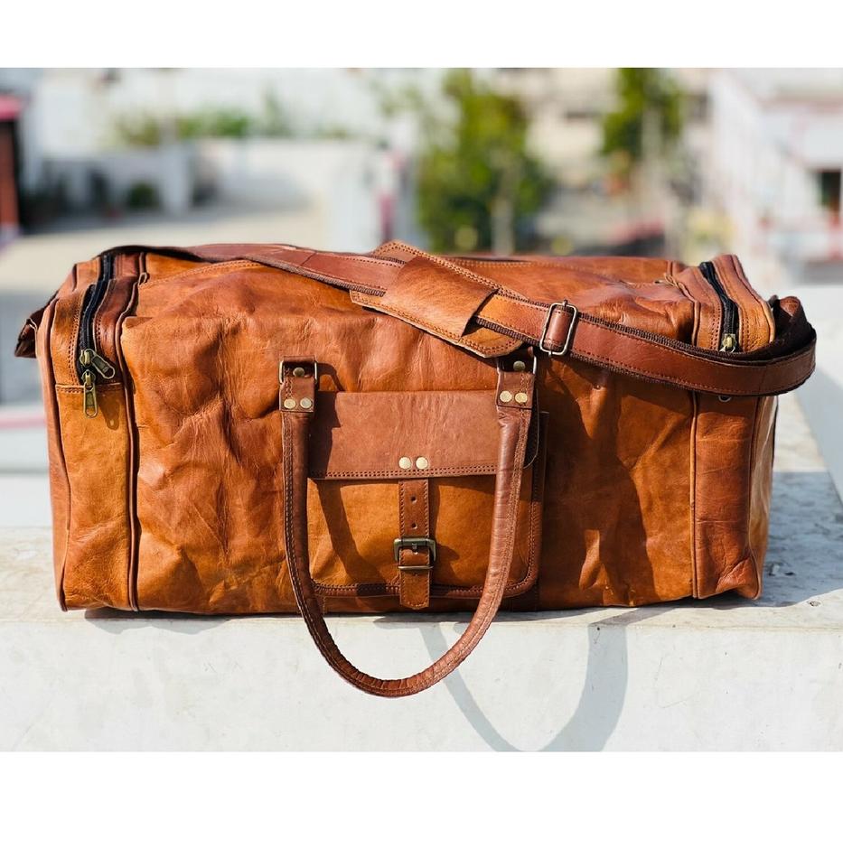 กระเป๋าดัฟเฟิลกระเป๋าเดินทางหนังแท้ความจุขนาดใหญ่เป็นมิตรกับสิ่งแวดล้อมกระเป๋ากีฬาลำลองสุดหรูสำหรับสุดสัปดาห์ที่ตั้งแคมป์ค้างคืน