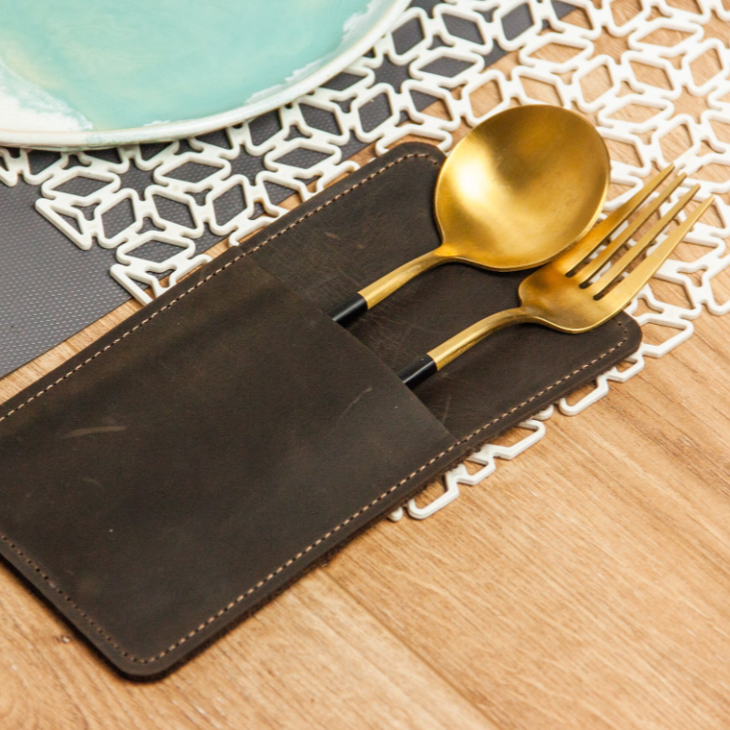 ที่ใส่ช้อนส้อมหนังอย่างดี เป็นมิตรกับสิ่งแวดล้อม ทนทาน ใช้ซ้ำได้ สำหรับการรับประทานอาหารอย่างยั่งยืน รุ่น LCH-0045