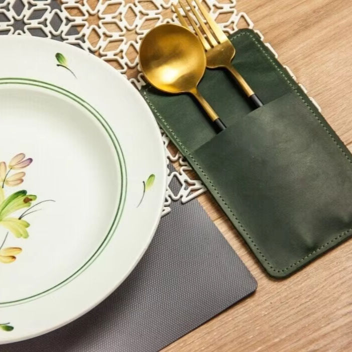 LCH-0012ใส่ช้อนส้อมแบบพับได้ทำจากหนังแท้หรูหราเป็นมิตรกับสิ่งแวดล้อมสำหรับร้านอาหาร