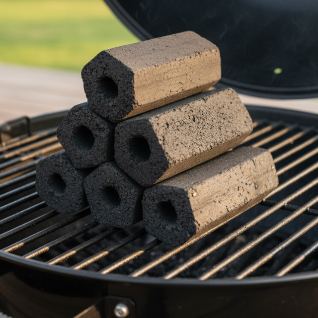 ถ่านกะลามะพร้าวอัดแท่ง ผลิตด้วยเครื่องจักร เป็นมิตรต่อสิ่งแวดล้อม ไร้ควัน ติดไฟนาน (4-6 ชั่วโมง) | ลายหกเหลี่ยมสำหรับบาร์บีคิว