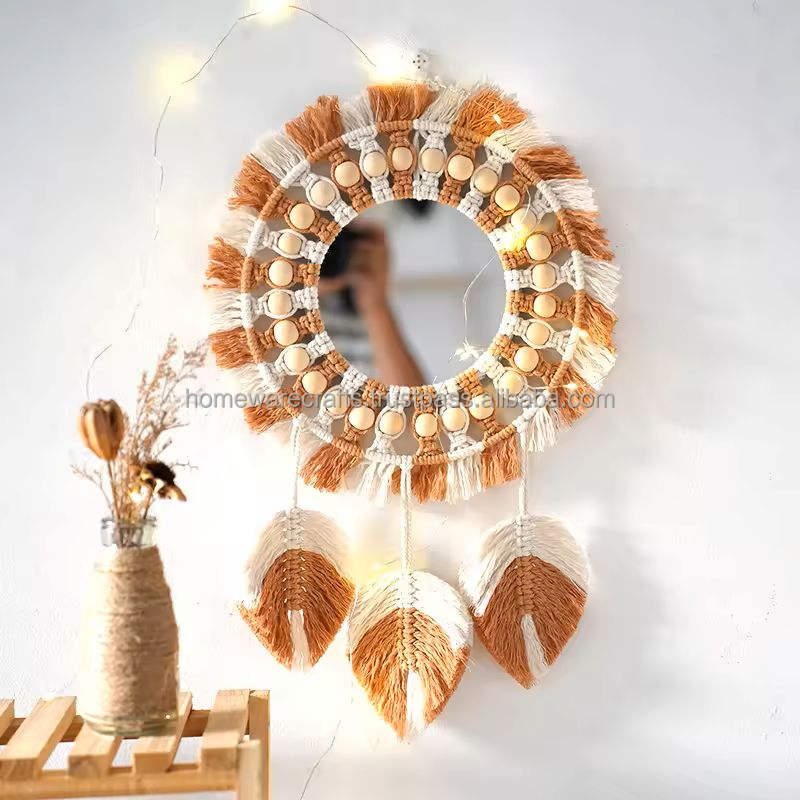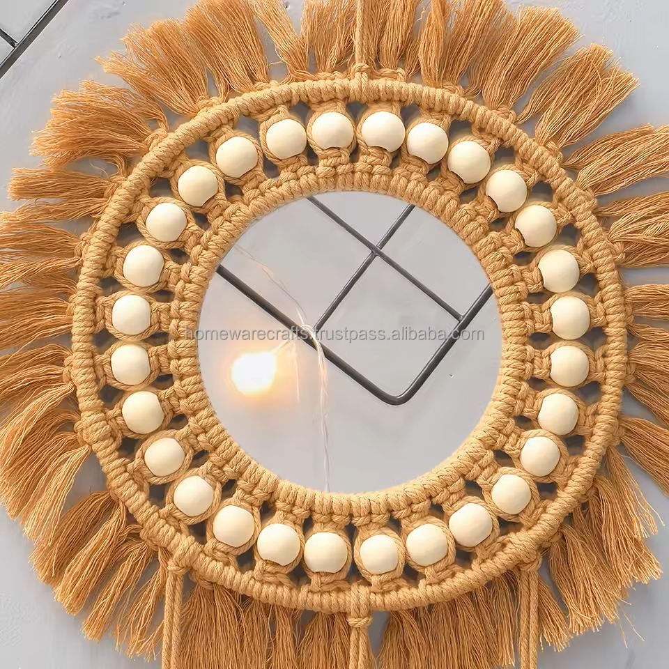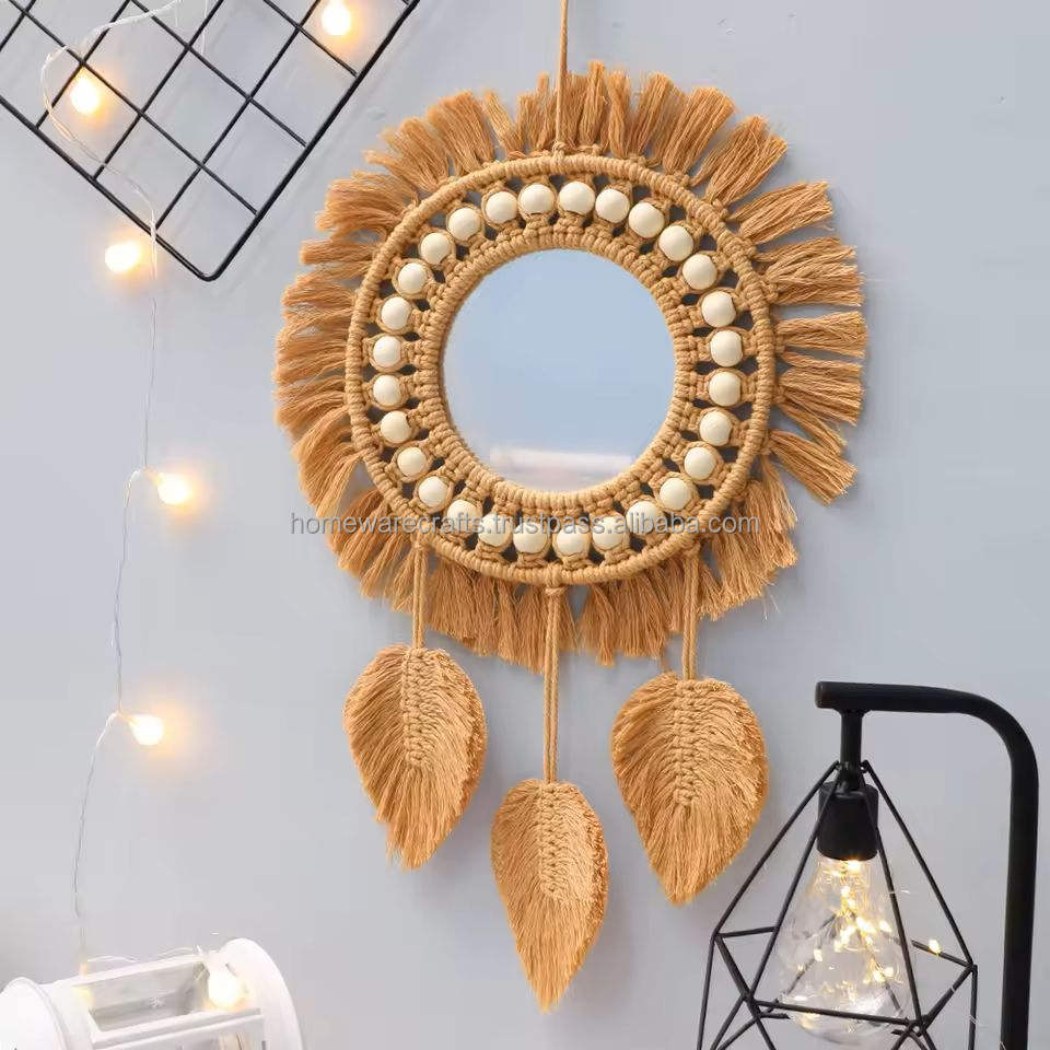 กระจกแขวนผนังกระจกแมคอาเมะเป็นมิตรต่อสิ่งแวดล้อมกระจกตกแต่งสไตล์โบฮีเมียนแฮนด์เมดผู้ผลิตจากเวียดนาม
