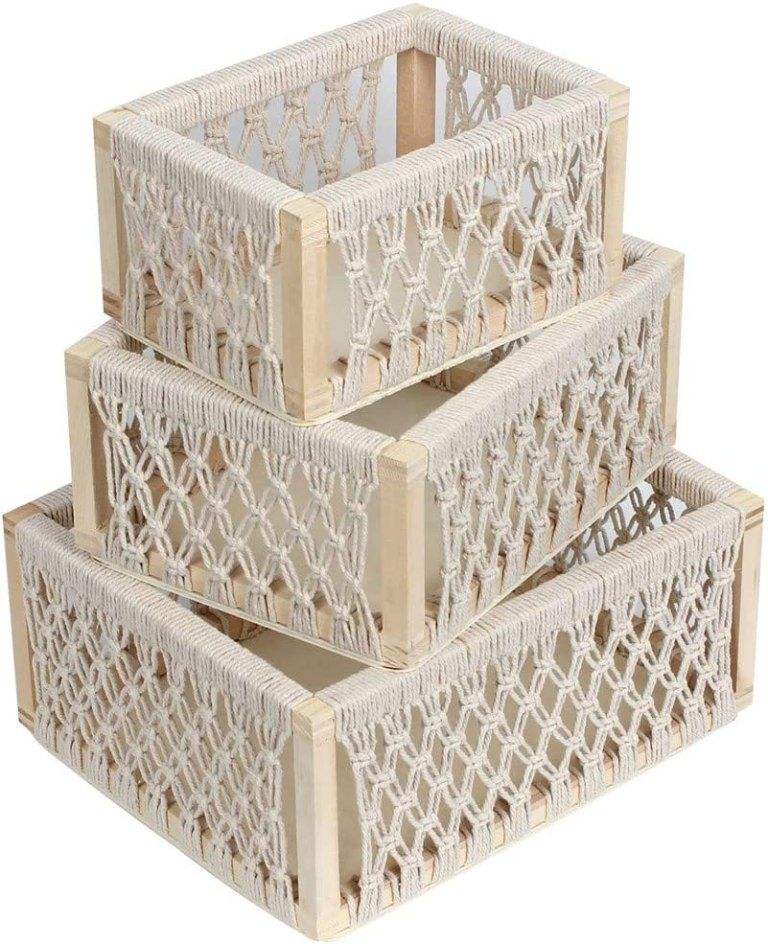 ตะกร้าเชือกมาคราเม่รักษ์โลกสำหรับจัดระเบียบบ้าน ทำจากผ้าฝ้ายรีไซเคิลและปมที่ทนทาน