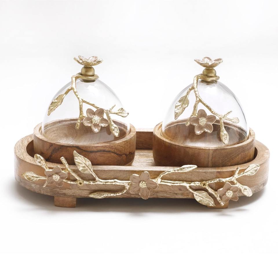 ถาดเสิร์ฟขนมคู่ ทำจากไม้มะม่วง เป็นมิตรกับสิ่งแวดล้อม | งานฝีมือสไตล์อินเดีย-ยุโรป | ของตกแต่งโต๊ะอาหาร/ครัว