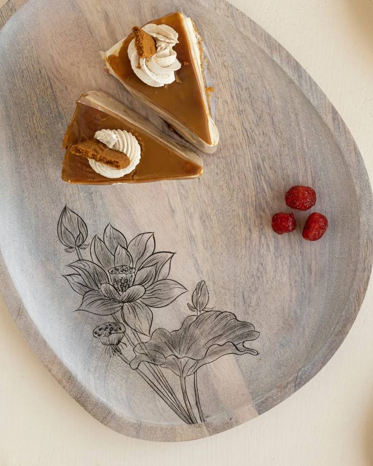 จานเสิร์ฟไม้มะม่วงรักษ์โลก ลายดอกไม้ วาดด้วยมือ ใช้กับเครื่องล้างจานได้ ปรับแต่งได้ เหมาะสำหรับเป็นของขวัญ-13นิ้ว X 10นิ้ว X 0.6นิ้ว