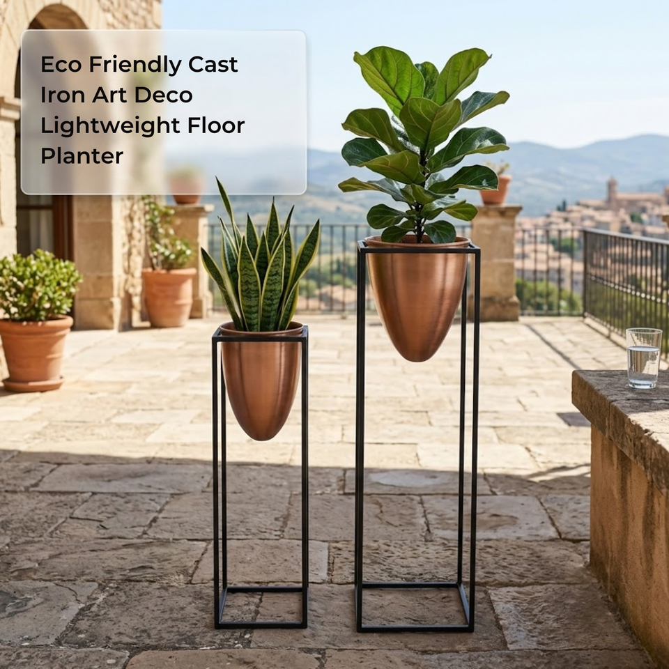 กระถางต้นไม้เหล็กหล่อแบบอาร์ตเดโค น้ำหนักเบา เป็นมิตรกับสิ่งแวดล้อม เคลือบสีฝุ่น สำหรับตกแต่งภายในและภายนอกบ้าน สวน ระเบียง ห้องนั่งเล่น