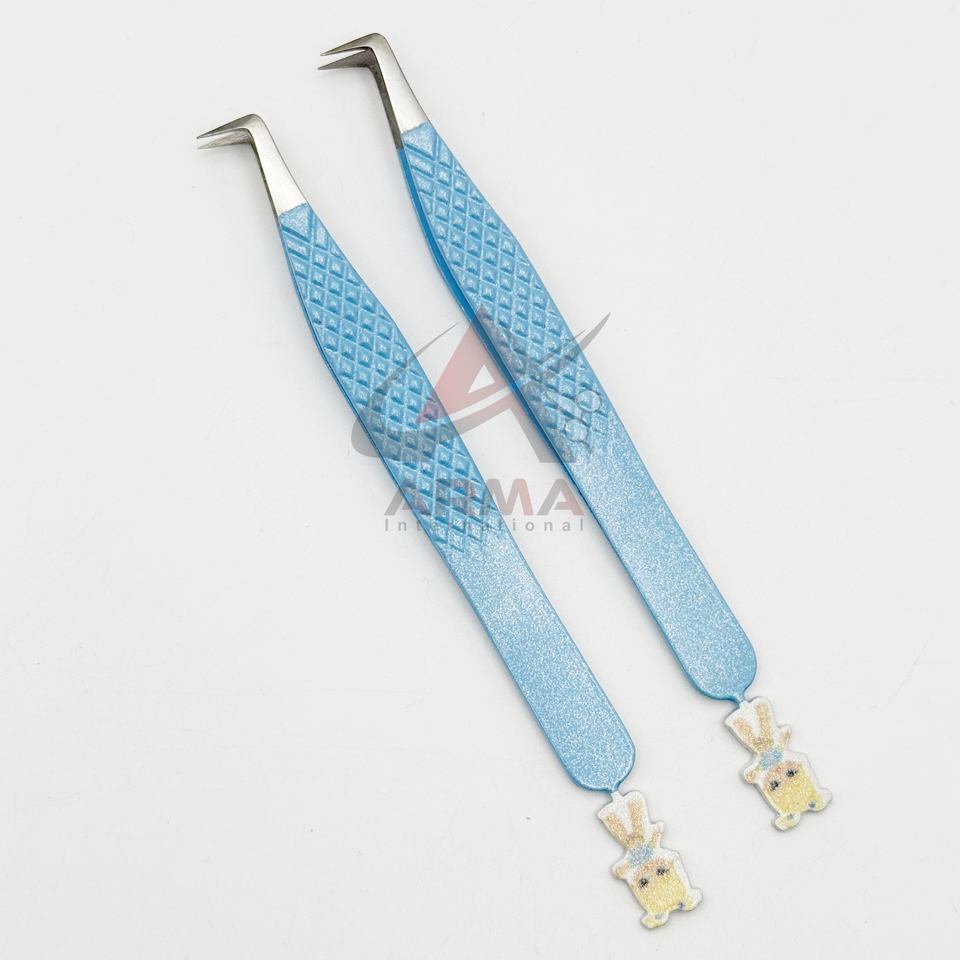 แหนบต่อขนตาแบบโลหะสีเมทัลลิก เป็นมิตรกับสิ่งแวดล้อม มุม 90 องศา ดีไซน์ CNC รูปทรงตุ๊กตา แหนบต่อขนตาที่ยั่งยืน