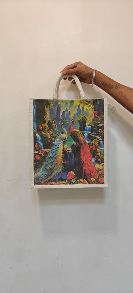 กระเป๋าผ้าแคนวาสขนาดเล็กแบบปรับแต่งได้ เป็นมิตรกับสิ่งแวดล้อม พร้อมลวดลายอินเดียดั้งเดิมที่วาดด้วยมืออย่างสวยงาม กระเป๋าแบบปรับแต่งได้ที่เป็นมิตรกับสิ่งแวดล้อม
