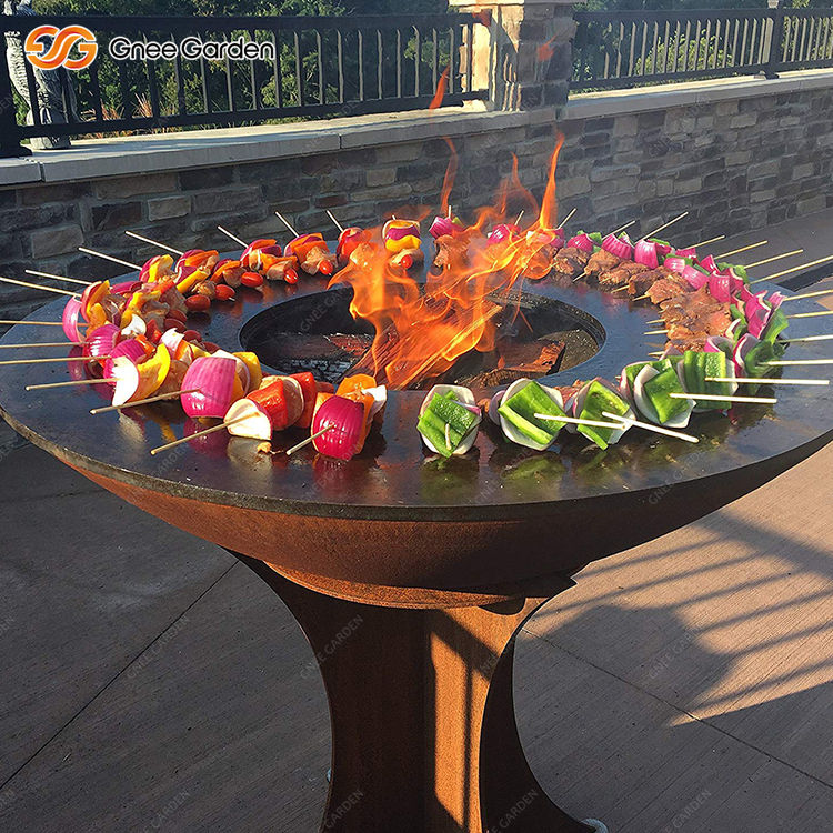 เตาย่างถ่านสนิมทำจากเหล็กคอร์เทนทันสมัยเป็นมิตรกับสิ่งแวดล้อมพร้อมรีโมทคอนโทรลและปรับความสูงได้สำหรับการตั้งแคมป์กลางแจ้งและบาร์บีคิว