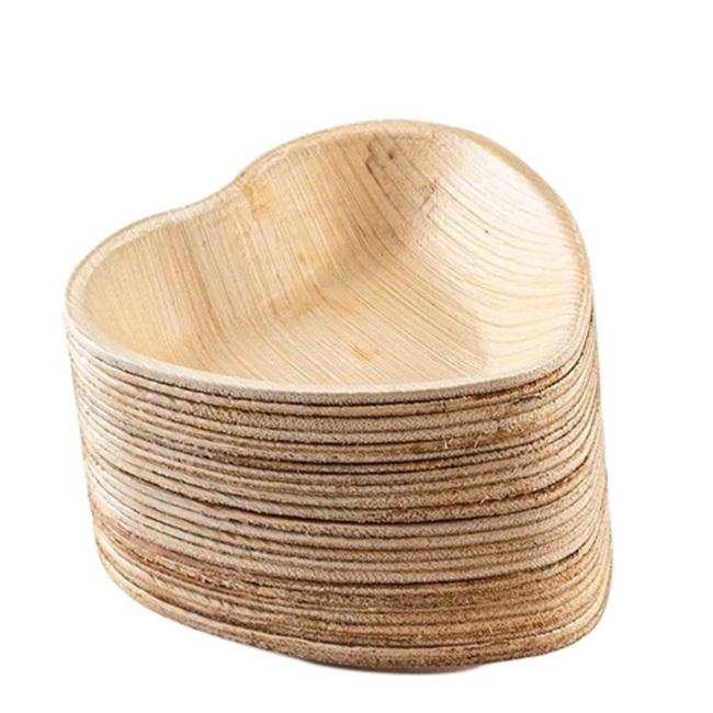 จานใบถั่ว Areca รูปหัวใจแบบย่อยสลายได้อุปกรณ์บนโต๊ะอาหารแบบใช้แล้วทิ้งเป็นมิตรกับ100% สิ่งแวดล้อม