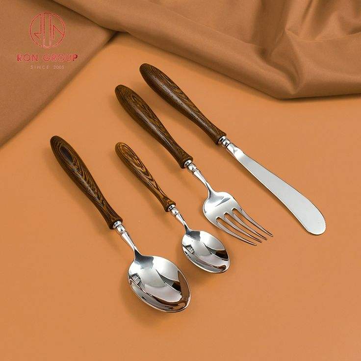 Eco Friendly Modern Stainless Steel Flatware Set With Natural Wooden Handle Fork Knife Spoon For Kitchen Dining Table