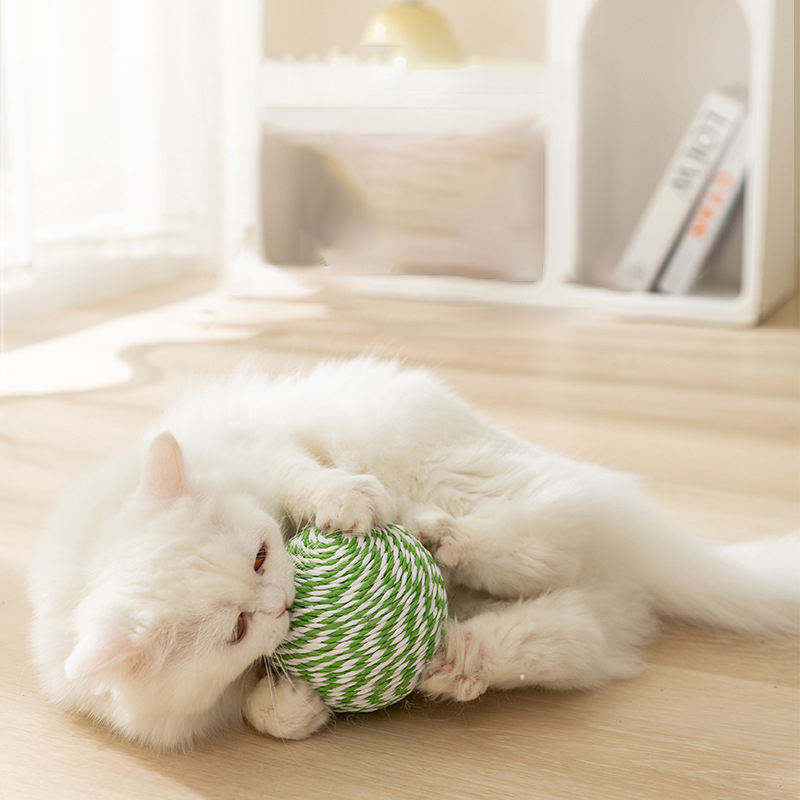ของเล่นแมวแบบลูกบอลทำความสะอาดฟัน ทำจากใยไซซอล เป็นมิตรกับสิ่งแวดล้อม ทันสมัย และช่วยกระตุ้นการกัดแทะ