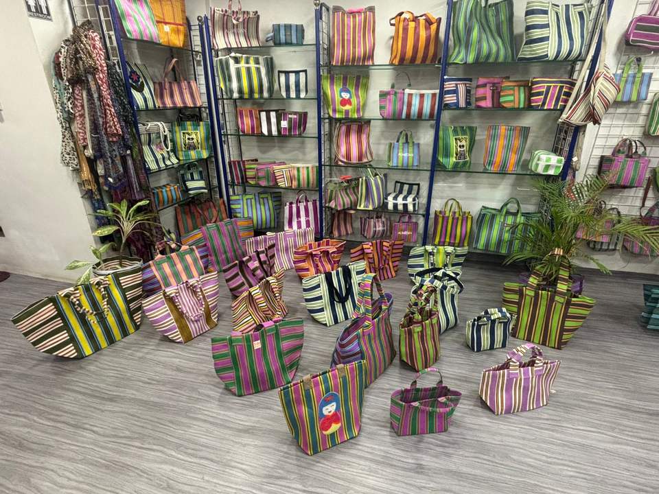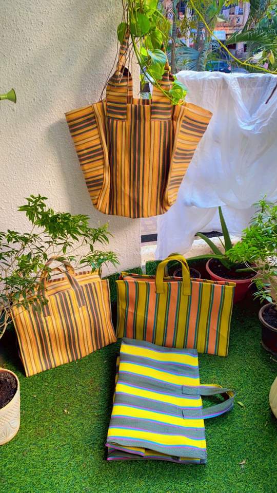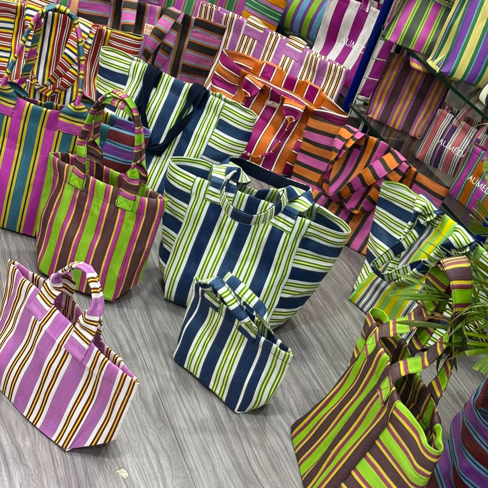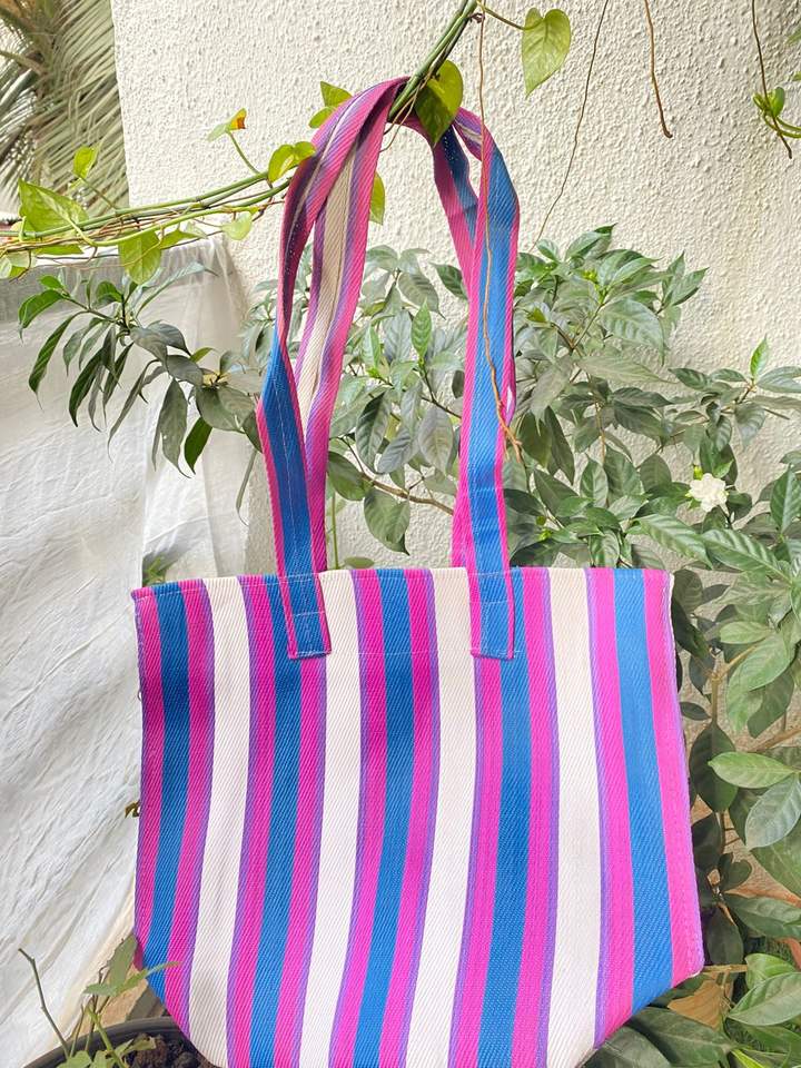 กระเป๋าถือผู้หญิงหลากสีเป็นมิตรกับสิ่งแวดล้อมอินเดียผลิตจากพลาสติกรีไซเคิลไนลอนกระเป๋าช้อปปิ้งกลางแจ้ง