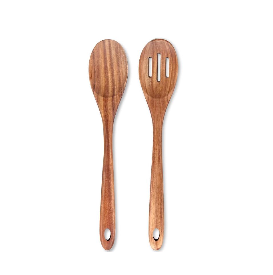 ชุดช้อนไม้สีธรรมชาติเป็นมิตรกับสิ่งแวดล้อมเครื่องใช้ในครัวด้ามยาวสำหรับผสมช้อนกวนโต๊ะ