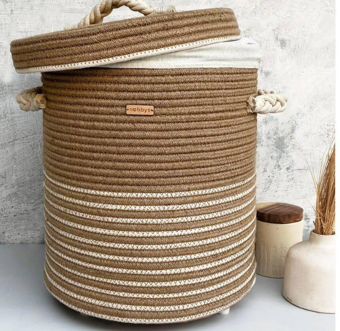 ตะกร้าผ้าปอกระเจาธรรมชาติเป็นมิตรกับสิ่งแวดล้อมวัสดุผ้าฝ้ายสินค้าขายดีสำหรับจัดเก็บที่บ้านสำหรับตะกร้าซักผ้าโดย mehak impex