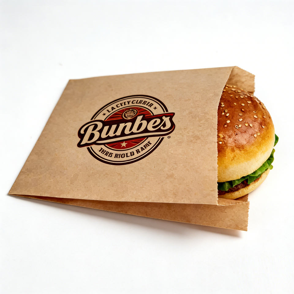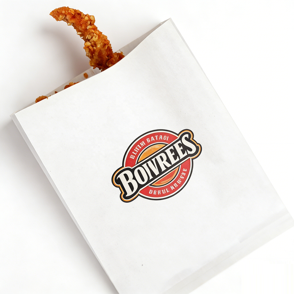 ถุงขนมเฟรนช์ฟรายส์แบบเป็นมิตรต่อสิ่งแวดล้อม ทำจากกระดาษคราฟท์ธรรมชาติ รีไซเคิลได้ พร้อมเคลือบด้วยโซยแว็กซ์ พิมพ์ด้วยระบบดิจิตอลและเฟล็กโซ