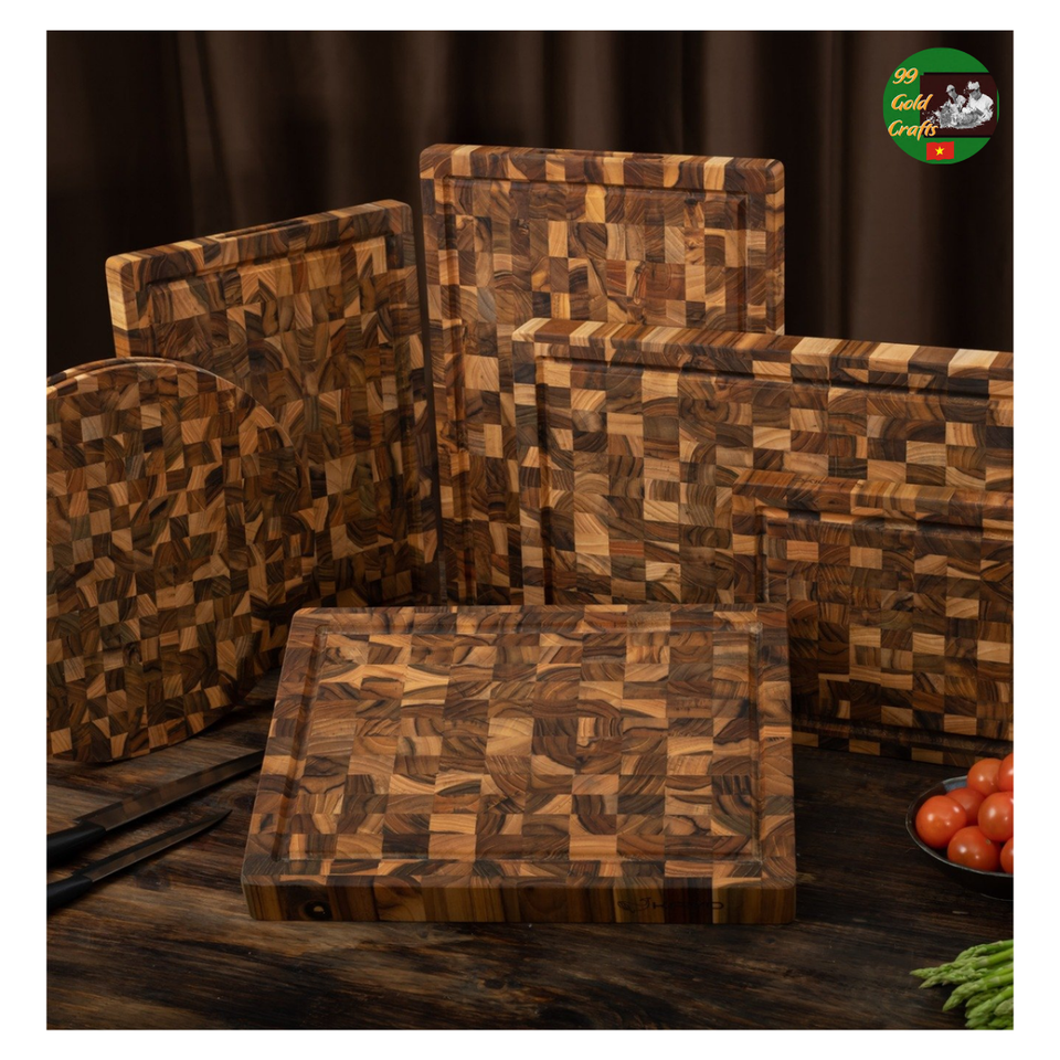 เขียงไม้สักธรรมชาติเป็นมิตรกับสิ่งแวดล้อมเขียงสไตล์บล็อกสำหรับใช้ในครัวเขียงไม้สัก