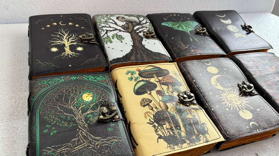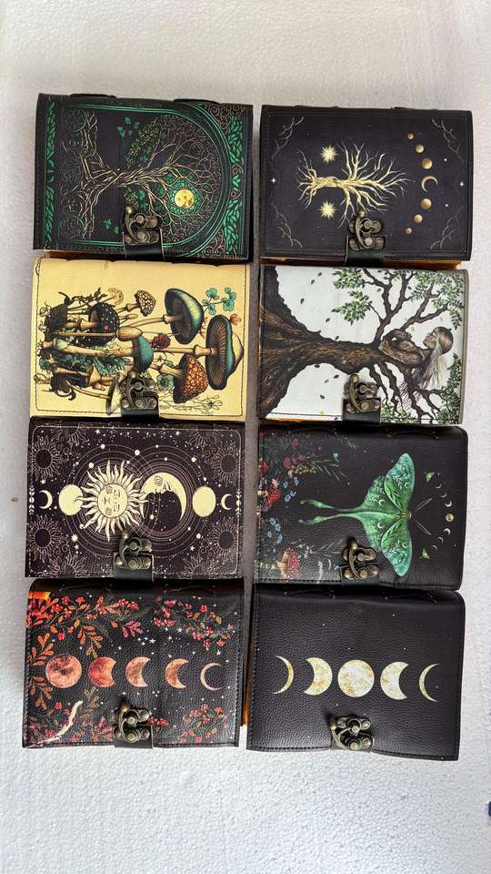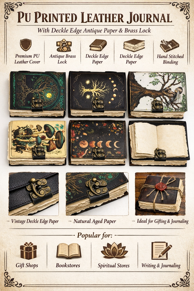 สมุดบันทึกปกหนัง PU พิมพ์ลายรักษ์โลก พร้อมกระดาษขอบดิบสไตล์วินเทจ ล็อคทองเหลืองแบบแองเจิล ของขวัญเครื่องเขียน
