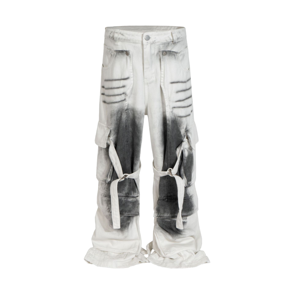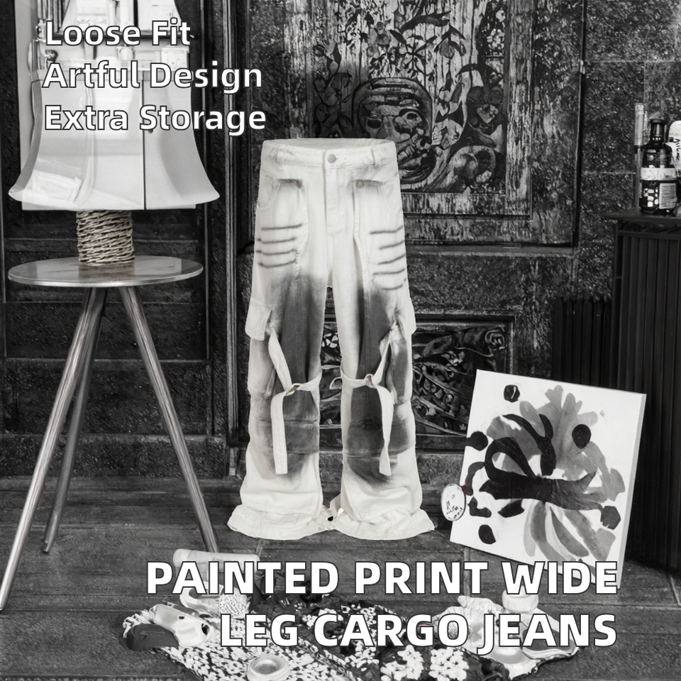 กางเกงยีนส์ลำลองแบบหลายกระเป๋าเอวซักได้กางเกงผ้ายีนส์ขาตรงเย็บปะติดเป็นมิตรกับสิ่งแวดล้อม