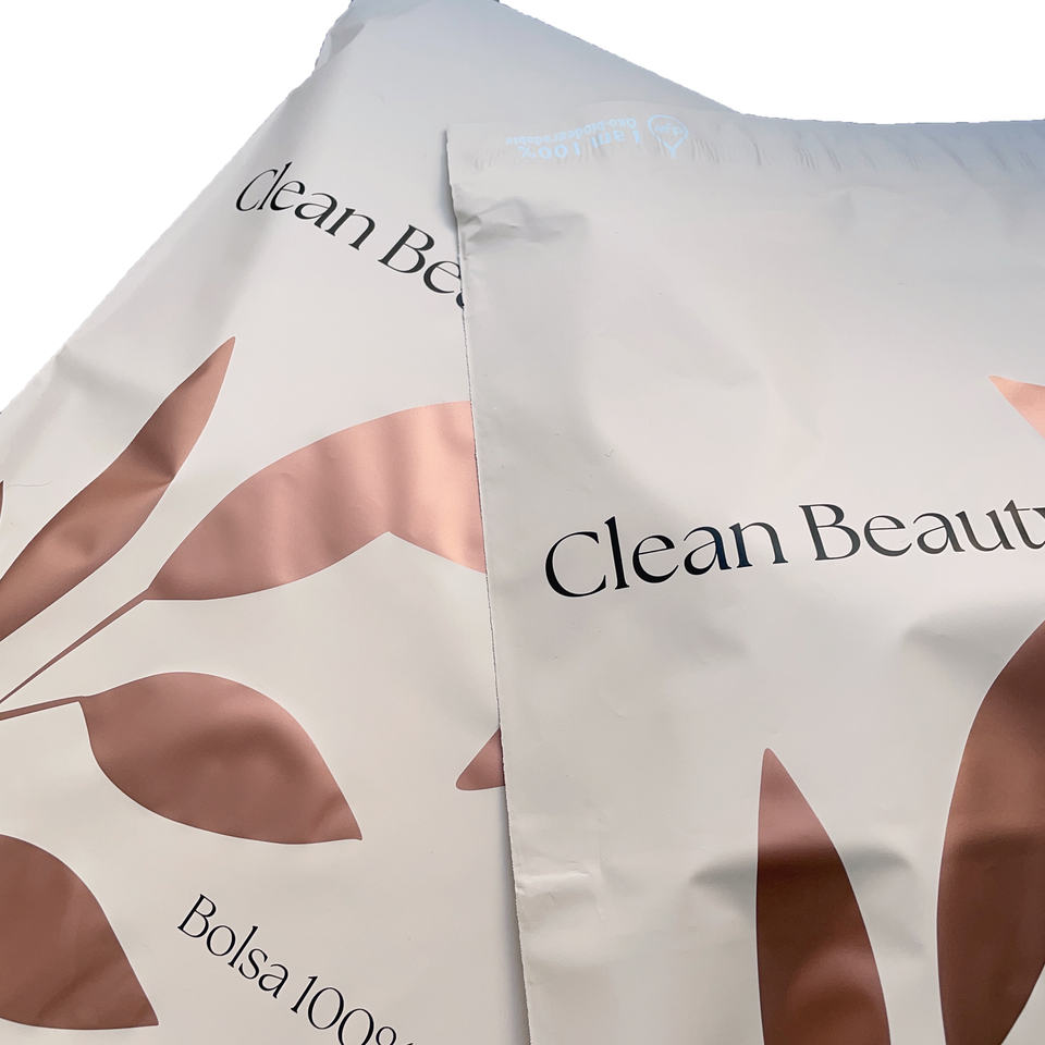 ถุงขนส่งสีพีชรักษ์โลก - ถุงโพลีเมลเลอร์พิมพ์ลายฟอยล์สีโรสโกลด์ ย่อยสลายได้ สำหรับบรรจุภัณฑ์ที่ยั่งยืน