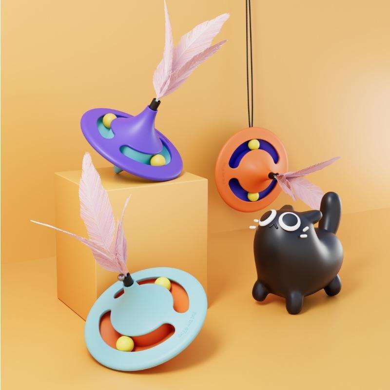 ของเล่นแมวแบบหมุนได้ ทำจากพลาสติกที่เป็นมิตรกับสิ่งแวดล้อม พร้อมถ้วยดูดแบบแขวน - ของเล่นสัตว์เลี้ยงแบบอินเทอร์แอคทีฟ