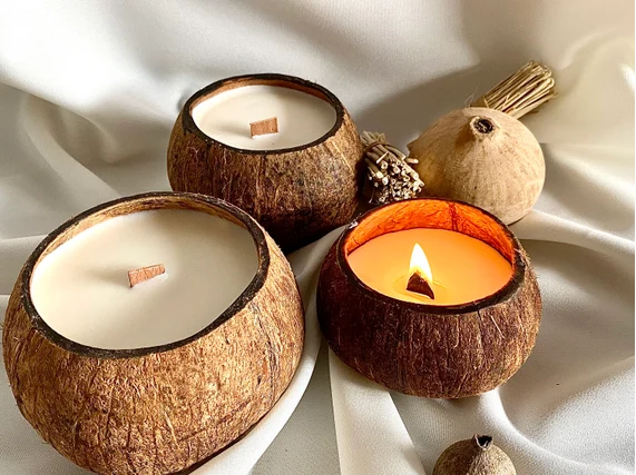 ถ้วยเทียนเปลือกมะพร้าวขัดเงาแบบรักษ์โลก - สำหรับงานปาร์ตี้ ปรับแต่งขนาดและโลโก้ได้ สไตล์ชนบท จาก Eco2go เวียดนาม