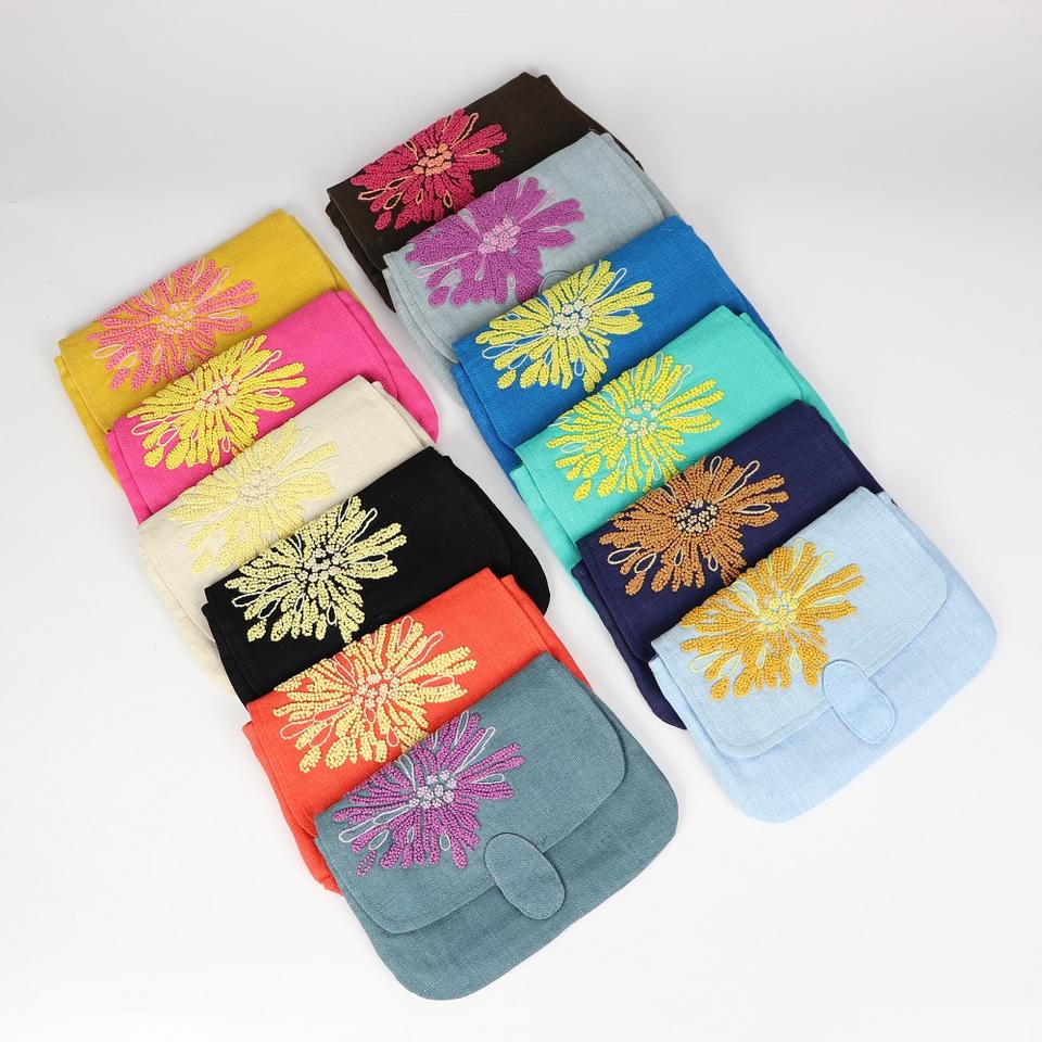กระเป๋าผ้าลินินสตรีคลาสสิกโพลีเอสเตอร์เป็นมิตรกับสิ่งแวดล้อมพร้อมฝาปิดแบบหนีบและลายดอกเดซี่ลูกปัดแก้วเย็บด้วยมือ