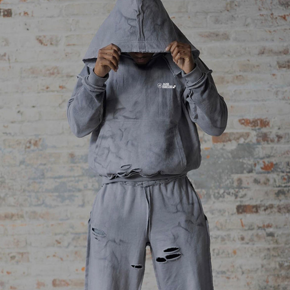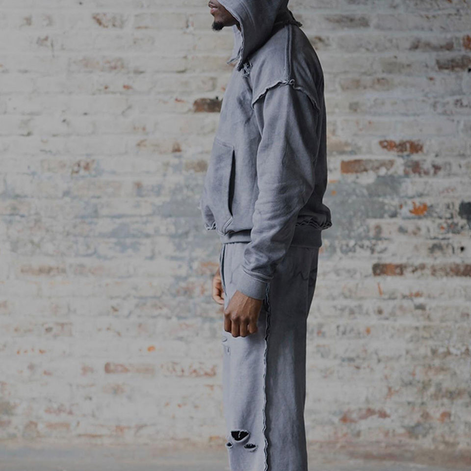ชุดวอร์มผู้ชายแบบลำลองสำหรับฤดูหนาว ระบายอากาศได้ดี คุณภาพพรีเมียม เป็นมิตรกับสิ่งแวดล้อม ดีไซน์ 2 in 1 น้ำหนักเบา ผลิตจากผ้าฝ้าย 100% พร้อมดีเทลขาดๆ แบบดิสเทรส