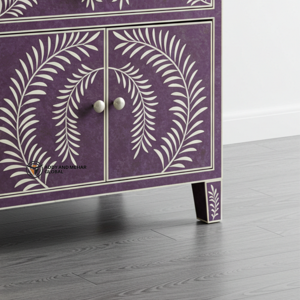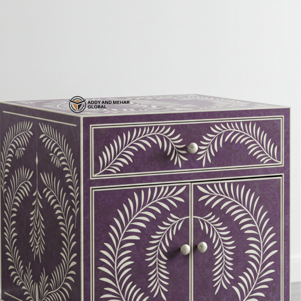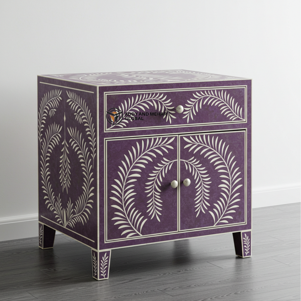 โต๊ะข้างหนึ่งลิ้นชักลายดอกไม้ที่สลับซับซ้อนแท่นวางกระดูกสีม่วงเป็นมิตรกับสิ่งแวดล้อม