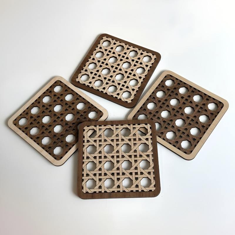 ที่รองแก้วหวายสี่เหลี่ยมสไตล์คลาสสิกเป็นมิตรกับสิ่งแวดล้อมถ้วยกาแฟสำหรับดื่มชากาแฟเครื่องครัว