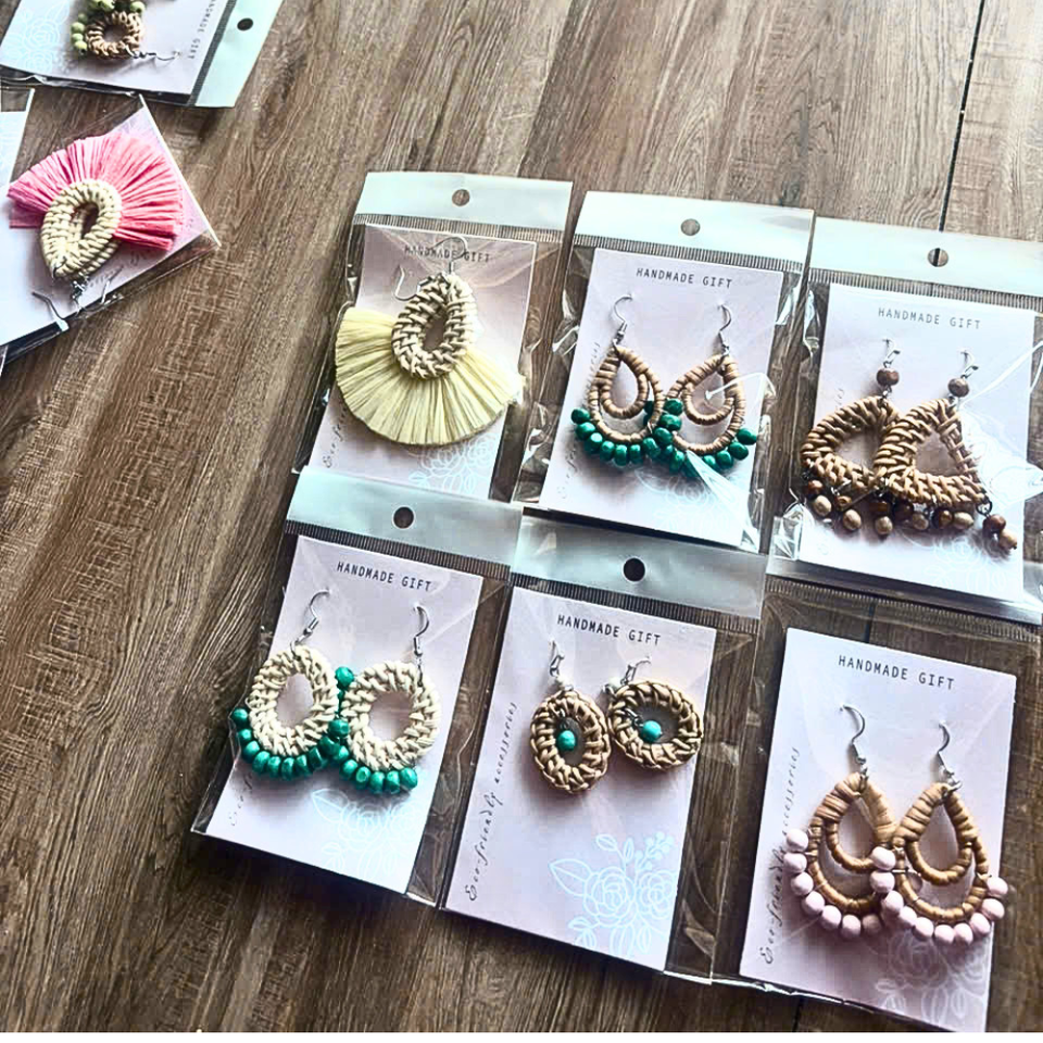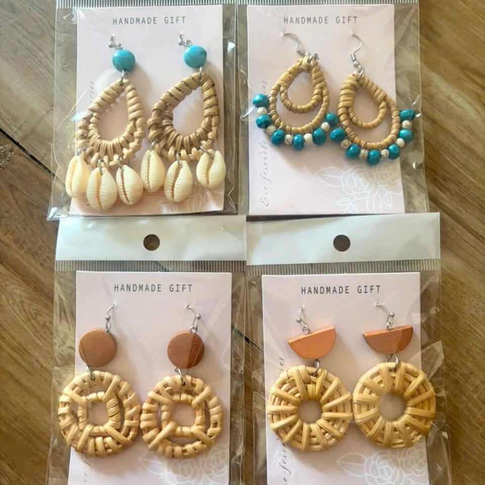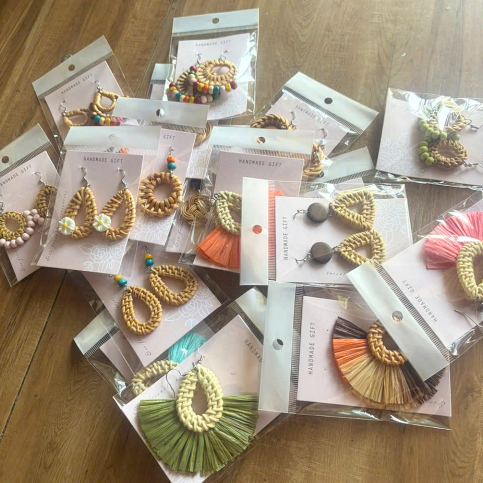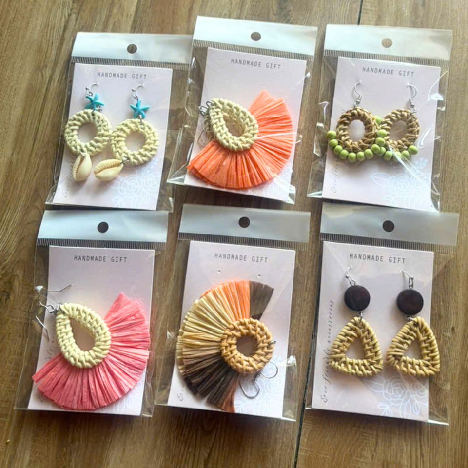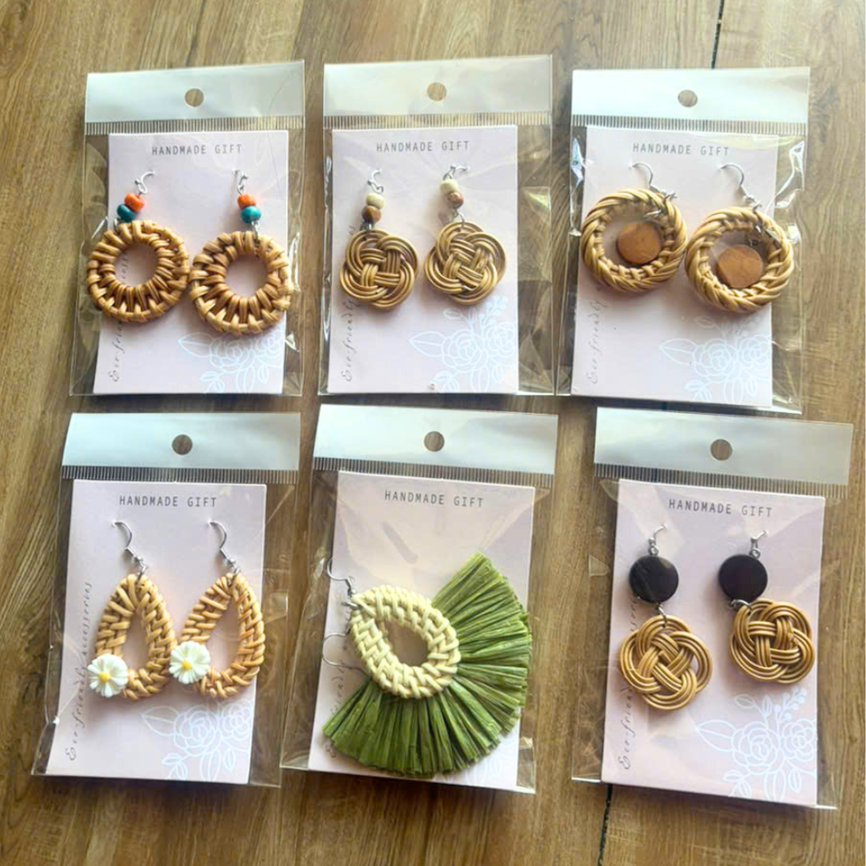 ต่างหูหวายรักษ์โลก ทำมือจากเวียดนาม สไตล์โบโฮชิค น้ำหนักเบา เครื่องประดับจากเส้นใยธรรมชาติ ของขวัญ
