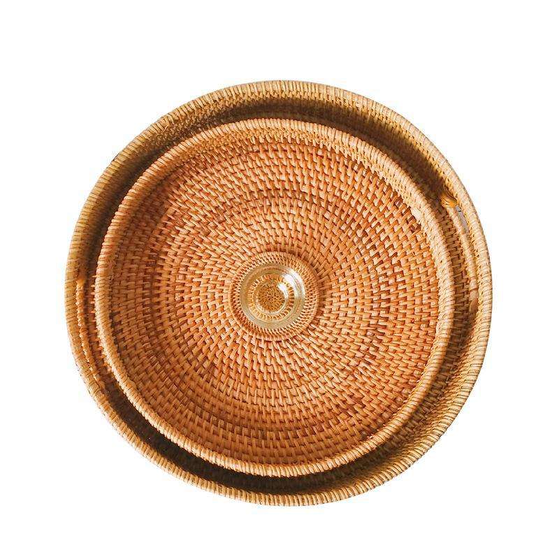 ถาดอาหารหวายสำหรับเก็บผักงานหัตถกรรมถาดเสิร์ฟอาหารเป็นมิตรกับสิ่งแวดล้อม