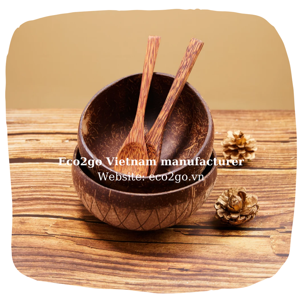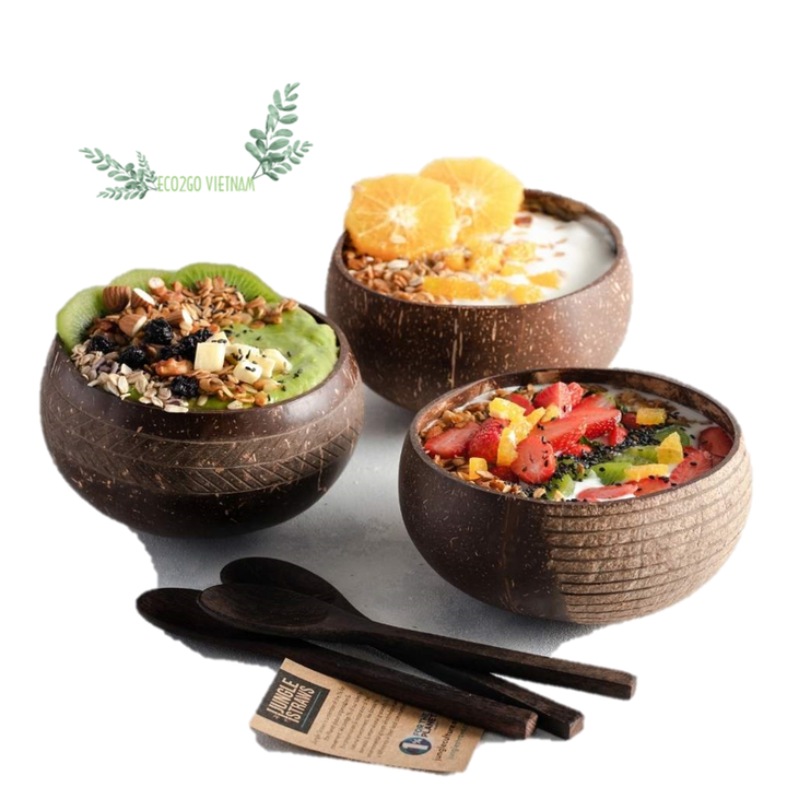 ชามมะพร้าวดิบเป็นมิตรกับสิ่งแวดล้อม 100% ชุดครัวออร์แกนิกธรรมชาติทําด้วยมือจากกะลามะพร้าวผลิตในเวียดนาม