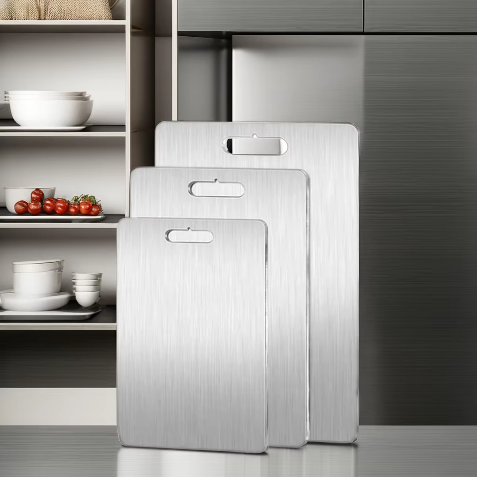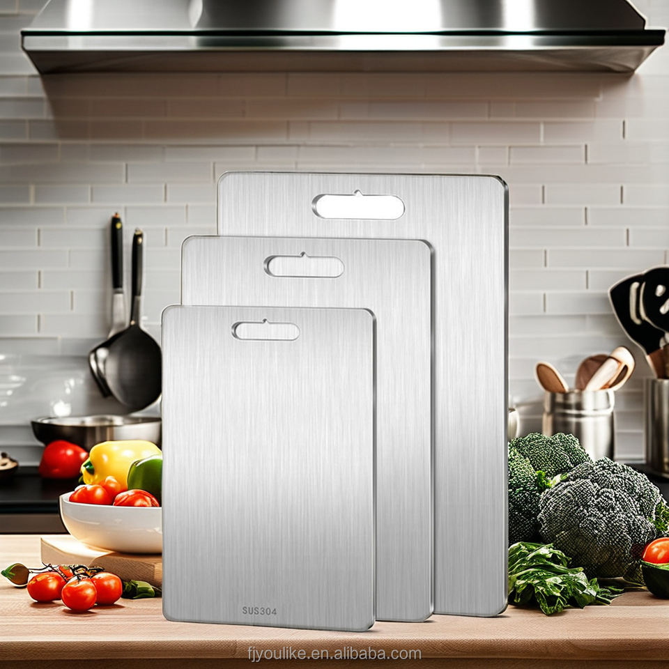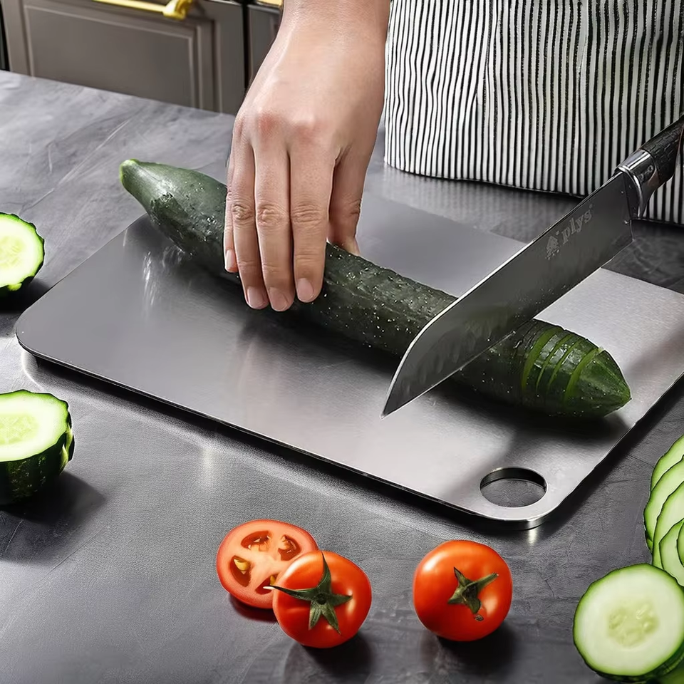 เขียงสเตนเลสสี่เหลี่ยมสองด้านทนทานเป็นมิตรต่อสิ่งแวดล้อมเขียงไทเทเนียมสำหรับห้องครัวผัก