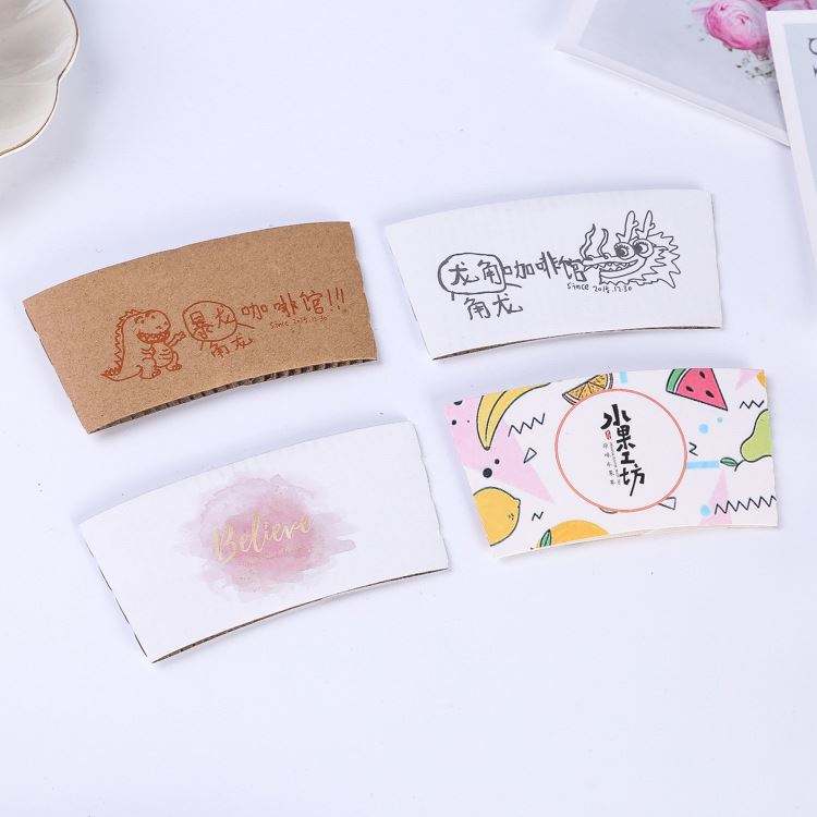 ปลอกกระดาษลูกฟูกแบบรีไซเคิลรักษ์โลกสำหรับแก้วกาแฟ ชา ไวน์ เตกีลา แบบสองชั้น ป้องกันความร้อน พิมพ์ลายได้ตามต้องการ