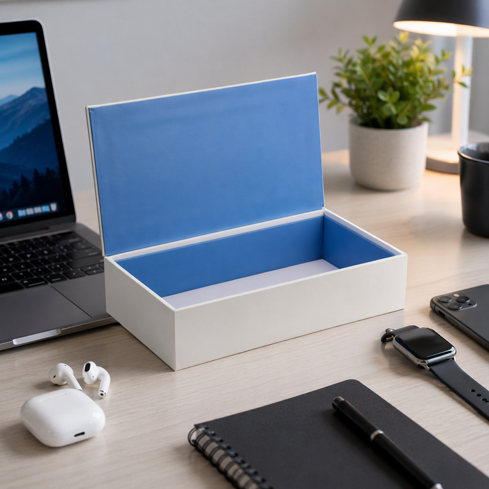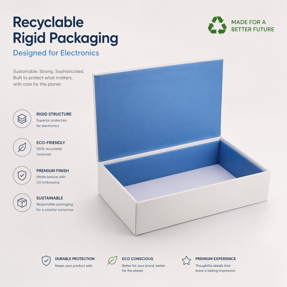 กล่องบรรจุภัณฑ์อิเล็กทรอนิกส์แบบแข็งทำจากกระดาษลูกฟูกที่เป็นมิตรกับสิ่งแวดล้อมและรีไซเคิลได้ | บรรจุภัณฑ์อิเล็กทรอนิกส์สำหรับผู้บริโภคแบบเคลือบด้านพร้อมลายนูนด้วยรังสียูวี