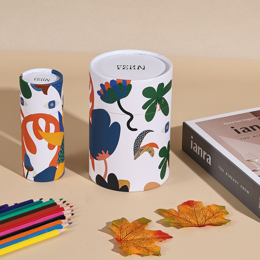 วัสดุกระดาษคราฟท์รีไซเคิลรักษ์โลก ทรงกระบอก พิมพ์สี่สี สำหรับบรรจุภัณฑ์หลอดขวดผลิตภัณฑ์ดูแลผิว