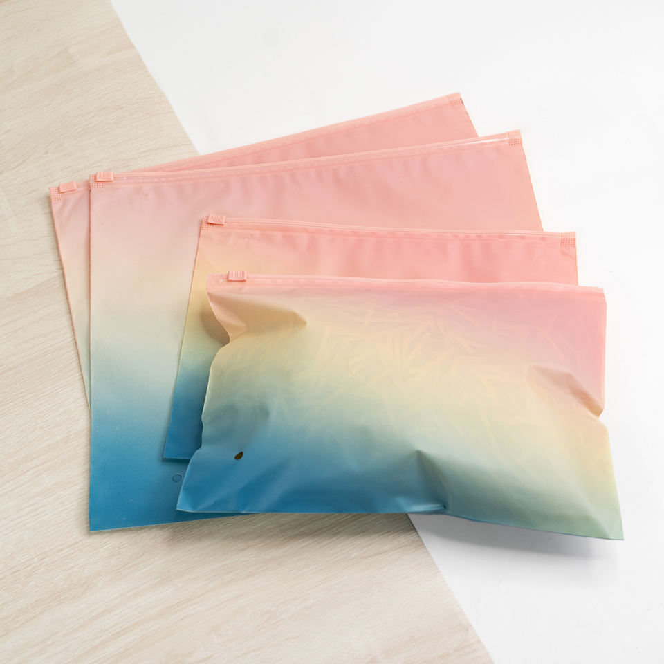ถุงซิปล็อคพลาสติกสีไล่ระดับแบบรีไซเคิลรักษ์โลก พิมพ์โลโก้ได้ สำหรับเสื้อยืด ถุงเท้า รองเท้า