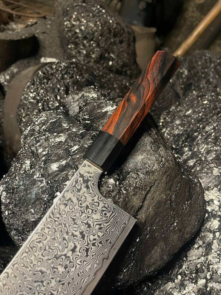 วัสดุใบมีด:แกนเหล็กดามัสกัส VG-10 หรือโลหะรีไซเคิล