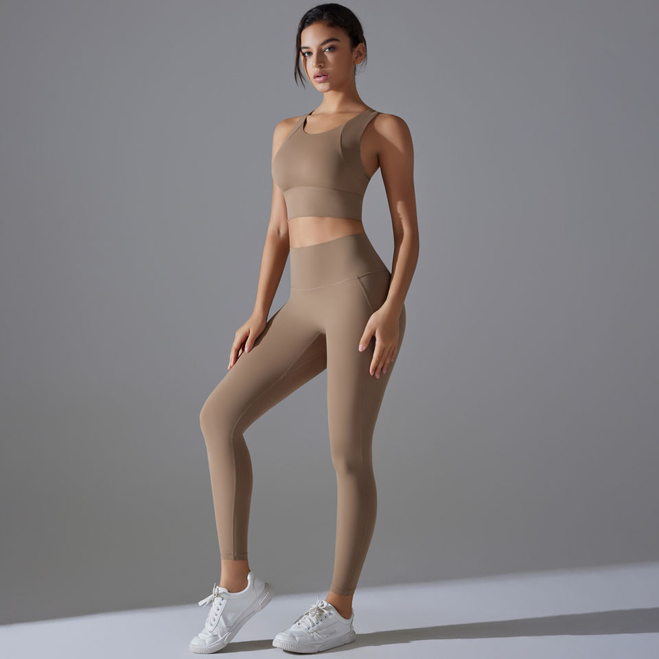 ชุดโยคะ2ชิ้นสำหรับผู้หญิงชุดเล่นโยคะผ้ายืดระบายอากาศได้ดีเป็นมิตรกับสิ่งแวดล้อม