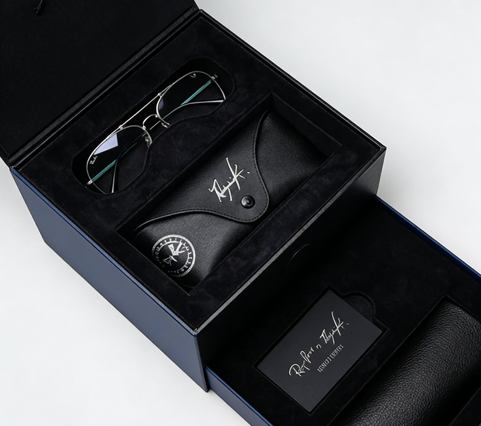 กล่องบรรจุภัณฑ์แว่นตาแบบพกพา ทำจากวัสดุรีไซเคิลรักษ์โลก พิมพ์โลโก้ได้ตามต้องการ หรูหรา แข็งแรง ทนทาน ใช้ซ้ำได้