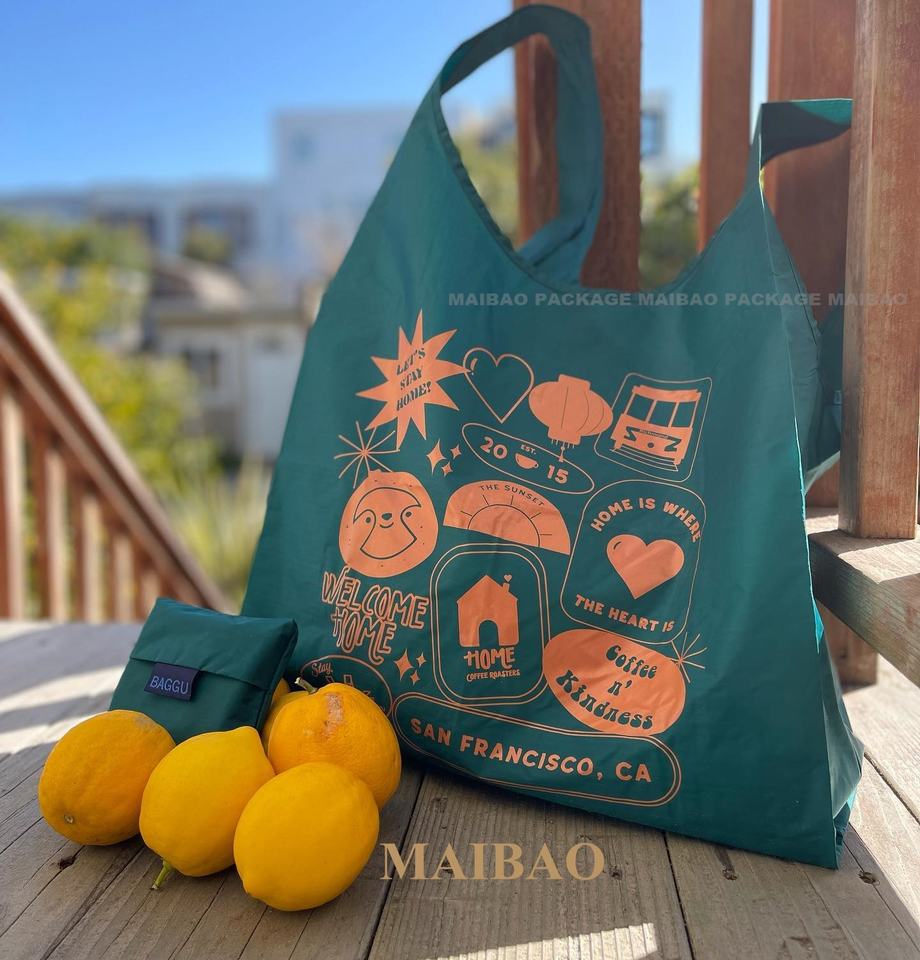 ถุงผ้าไนลอนกันน้ำใช้ซ้ำได้สำหรับซื้อของใช้ในร้านขายของชำเป็นมิตรกับสิ่งแวดล้อม
